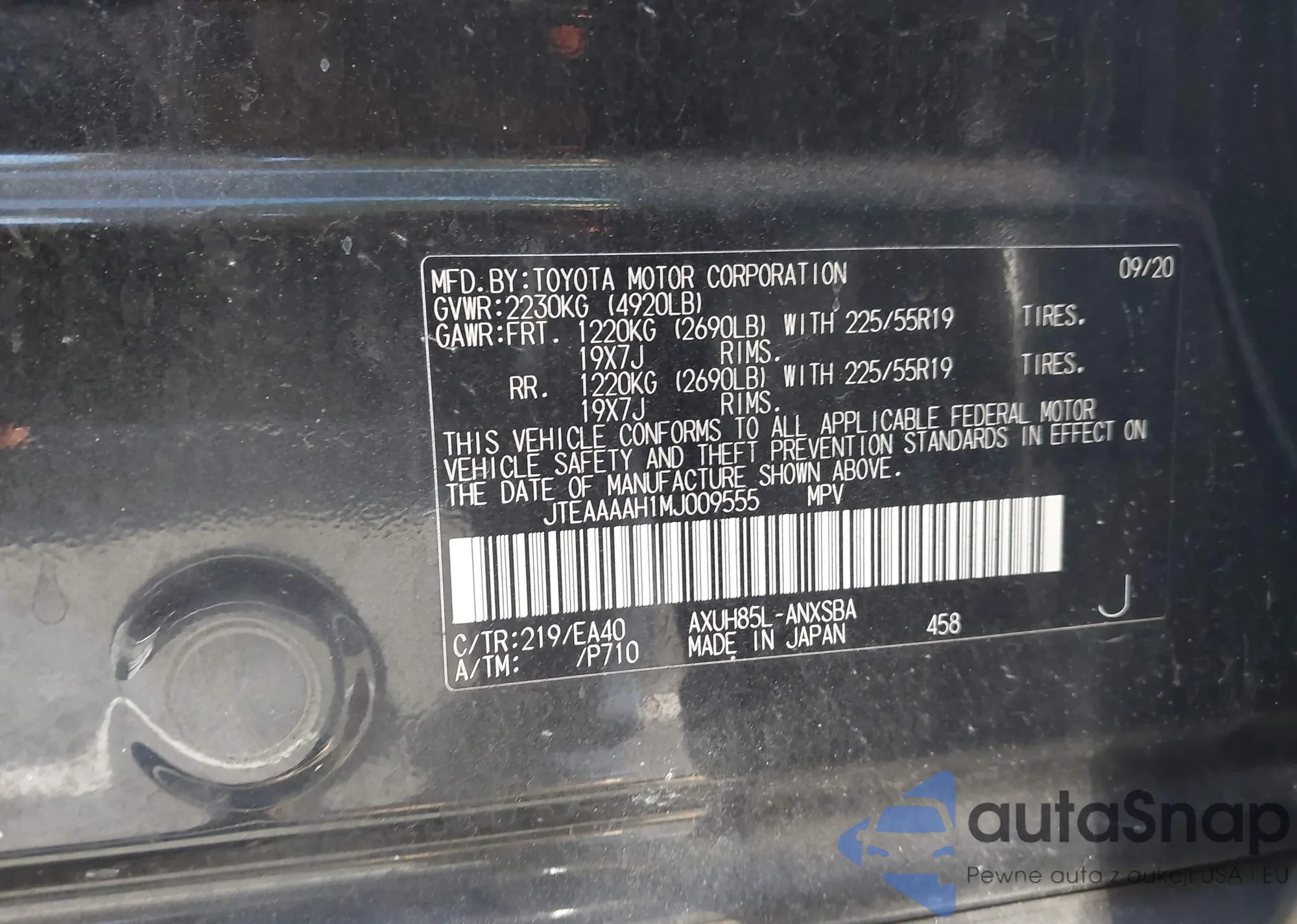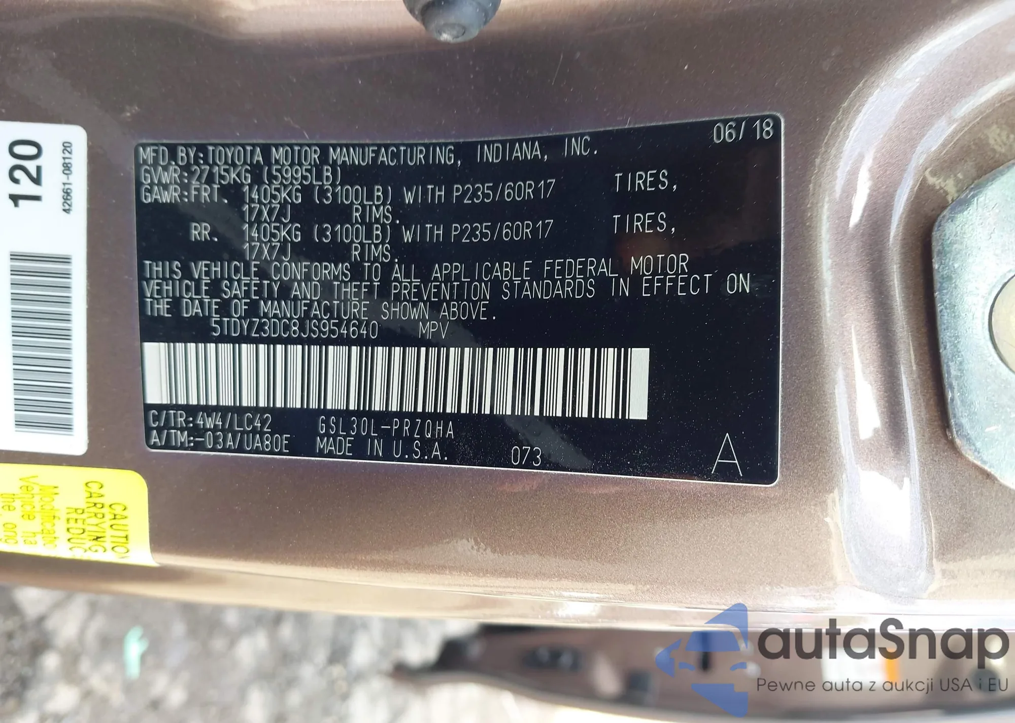 • VIN 5TDYZ3DC8JS954640