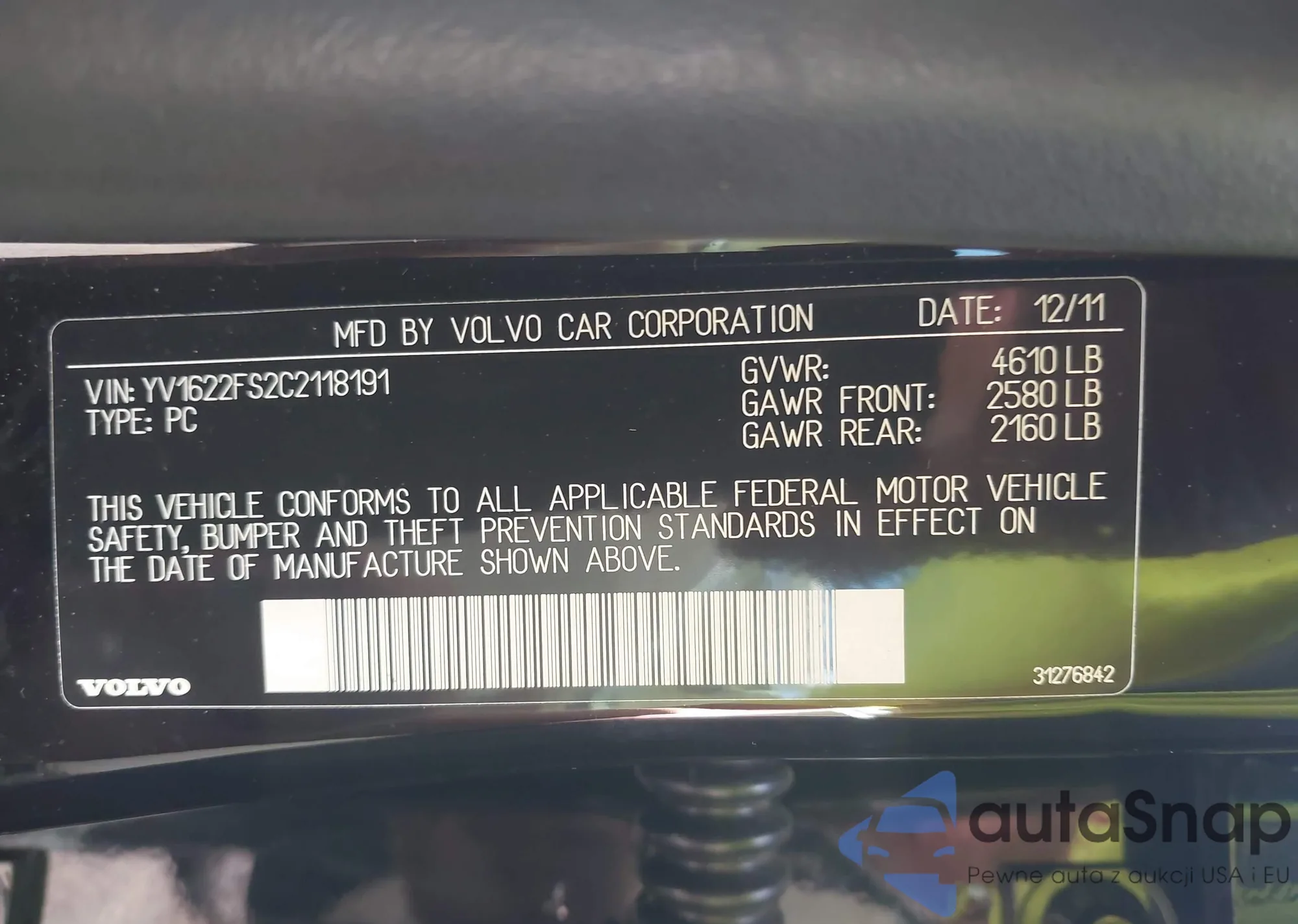 LOT: 43174404 VIN: YV1622FS2C2118191