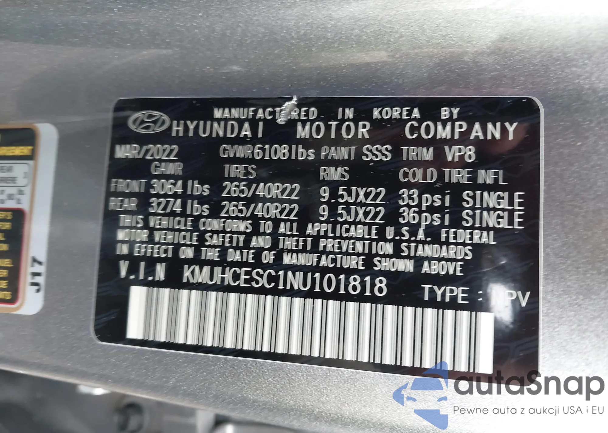 LOT: 43157335 VIN: KM8SMDHF9GU152273