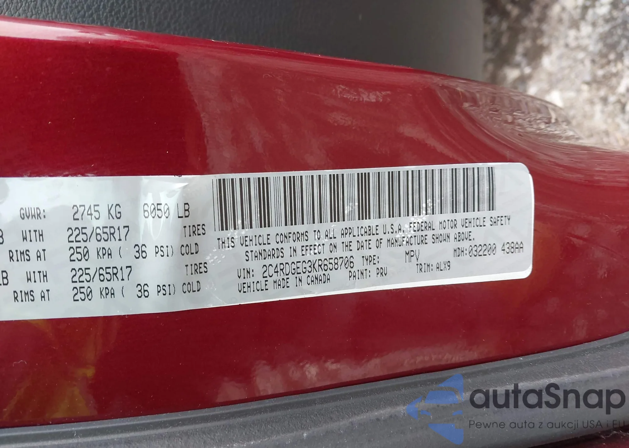 • VIN 2C4RDGEG3KR658706