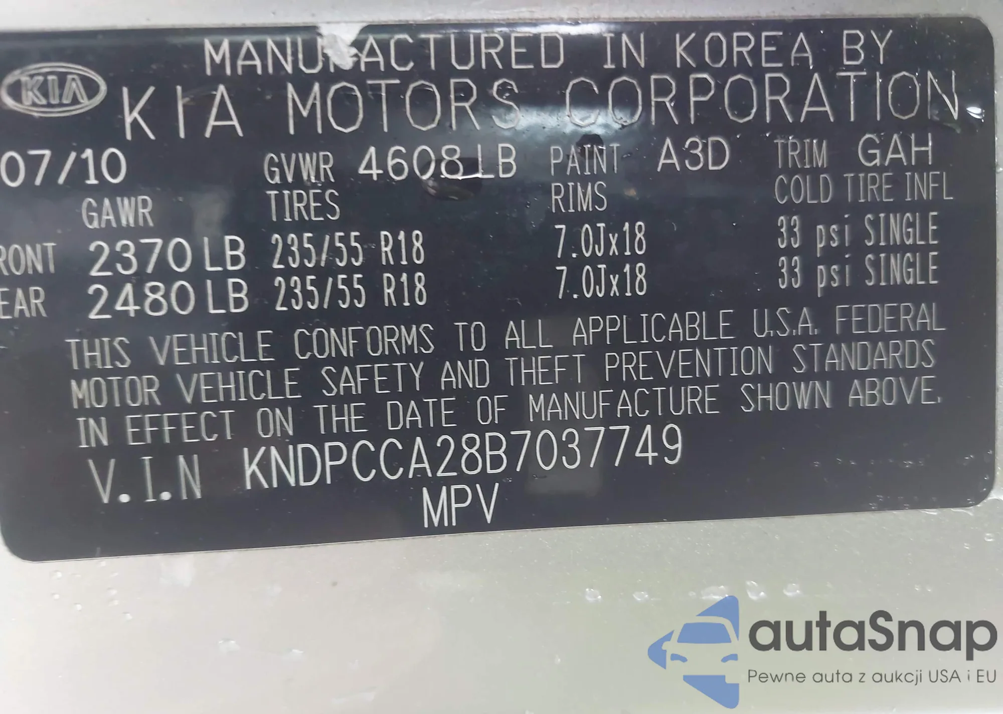 • VIN KNAFE221X95601541