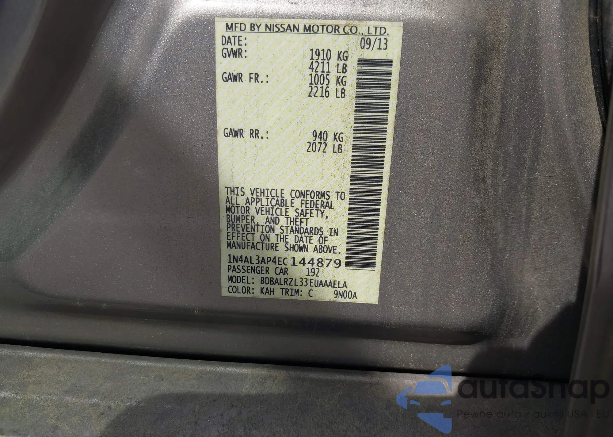 • VIN 1N4AL3AP4EC144879