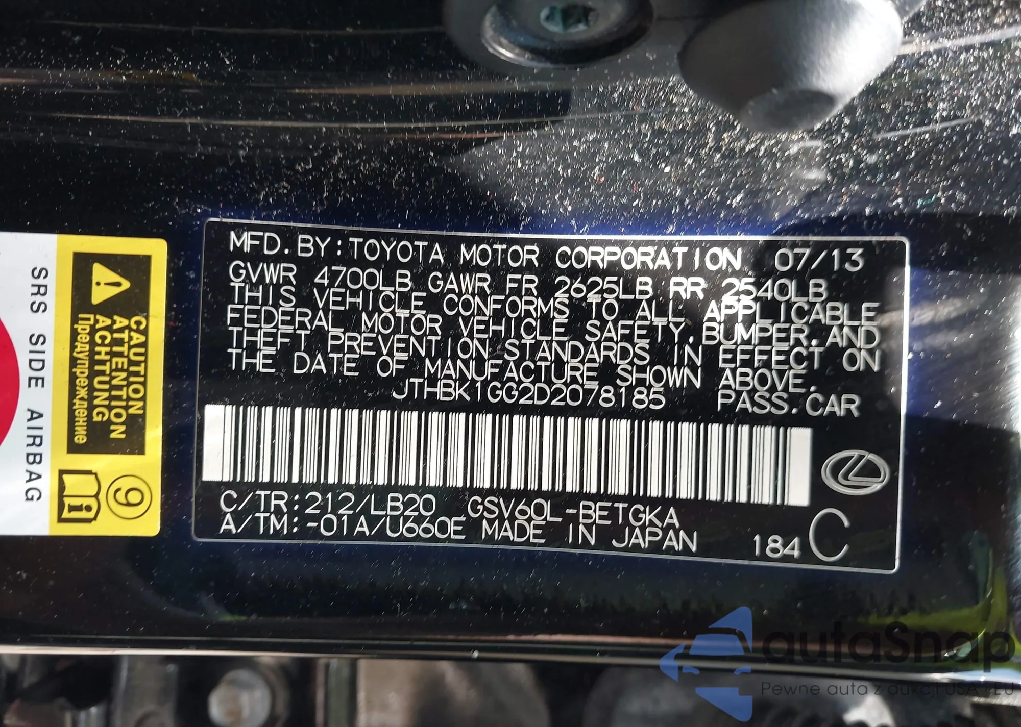 LOT: 43266816 VIN: YV1612FS4D2227482