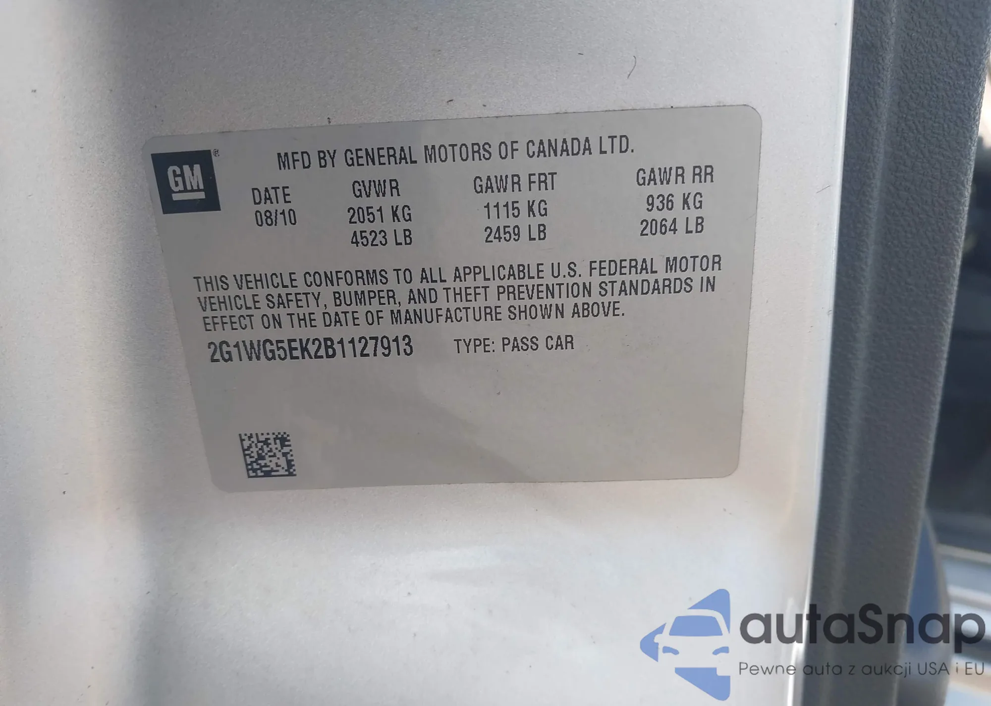 • VIN 2G1WG5EK2B1127913