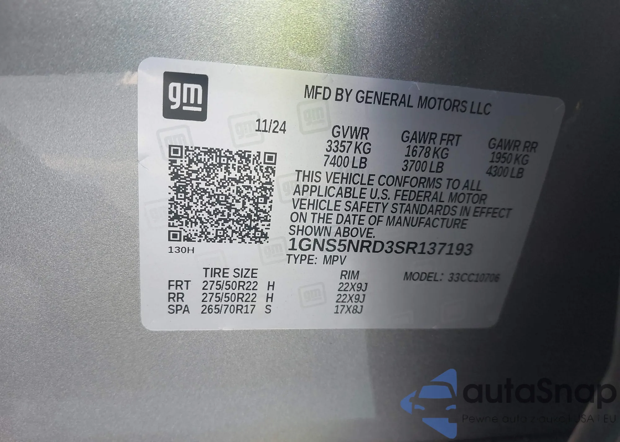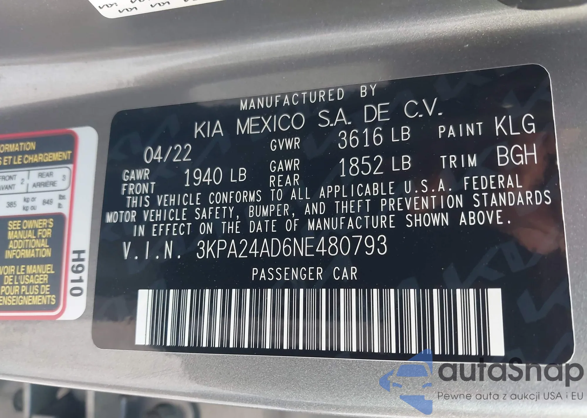 LOT: 43194097 VIN: WA19NAF47HA116465