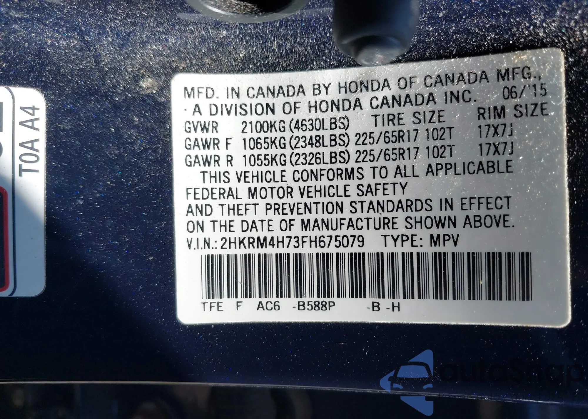 • VIN 2HKRM4H73FH675079