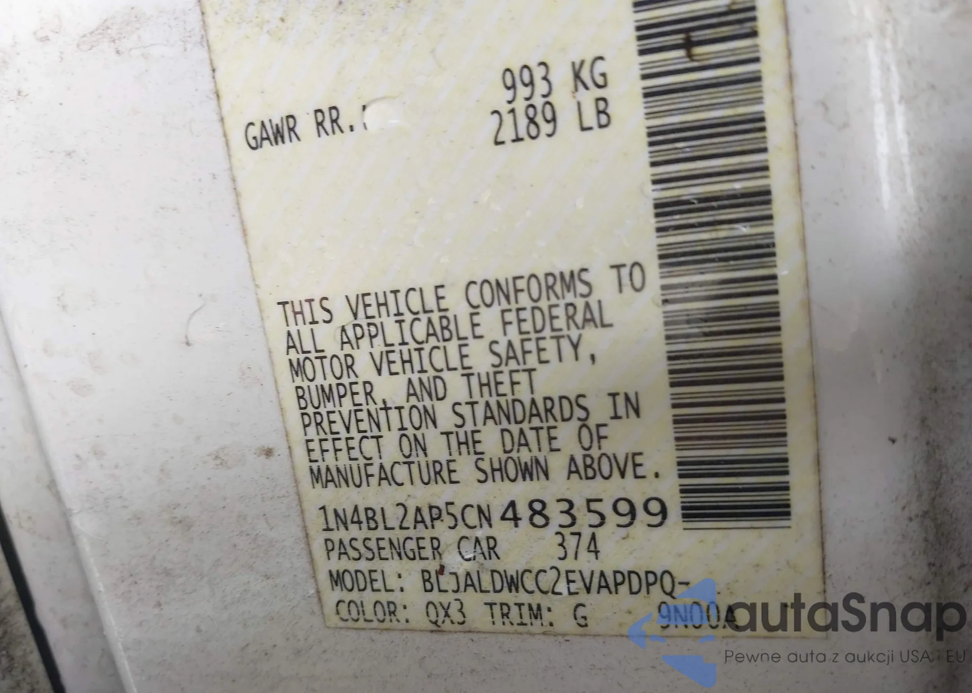 • VIN 1N4BL2AP5CN483599