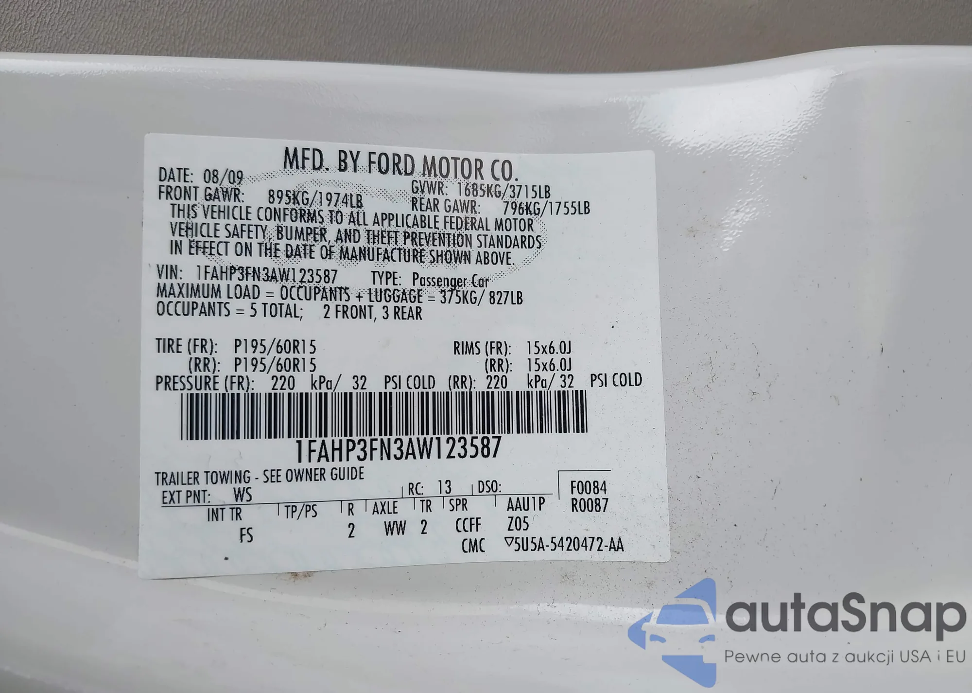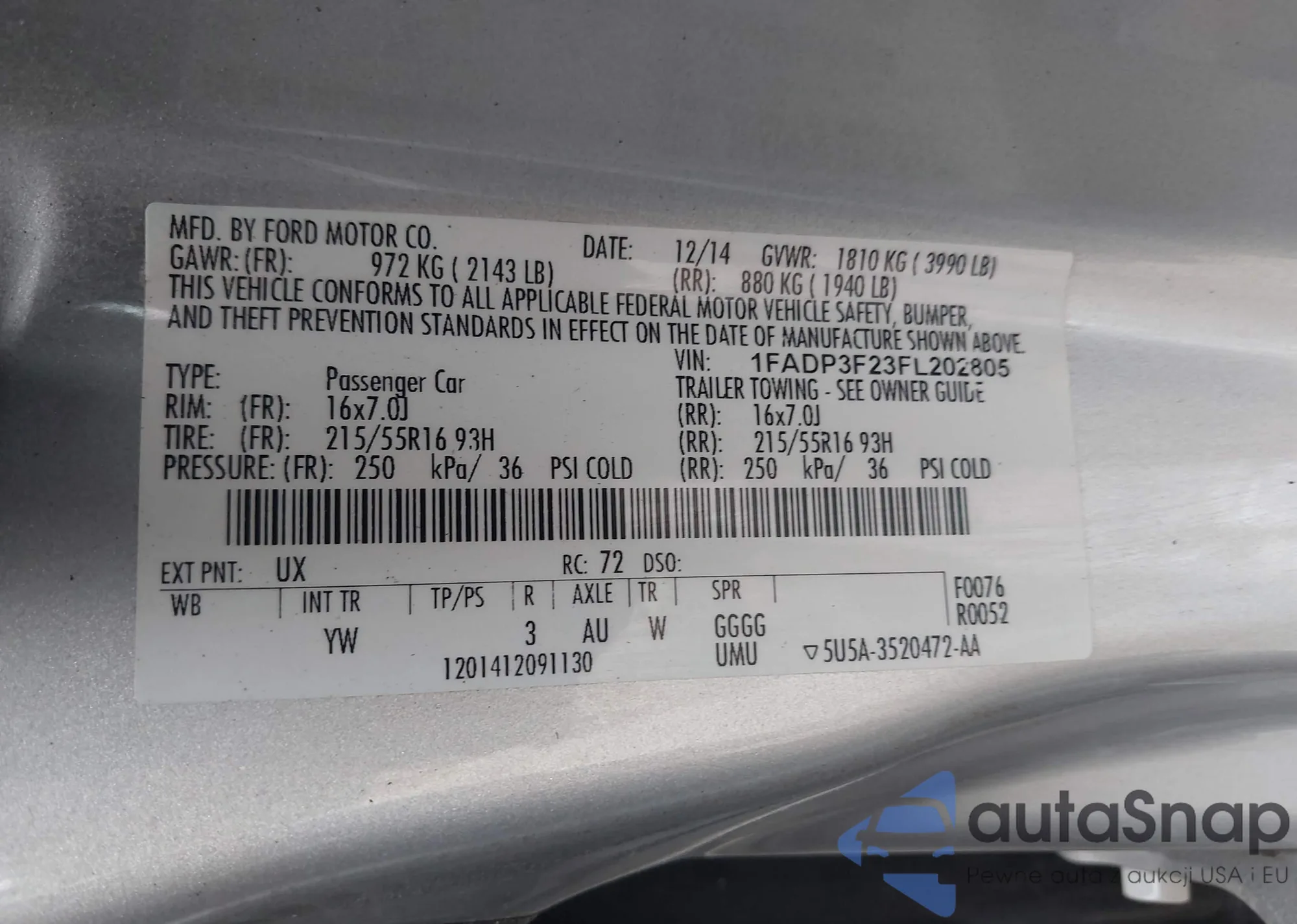LOT: 43053905 VIN: 1FADP3F23FL202805