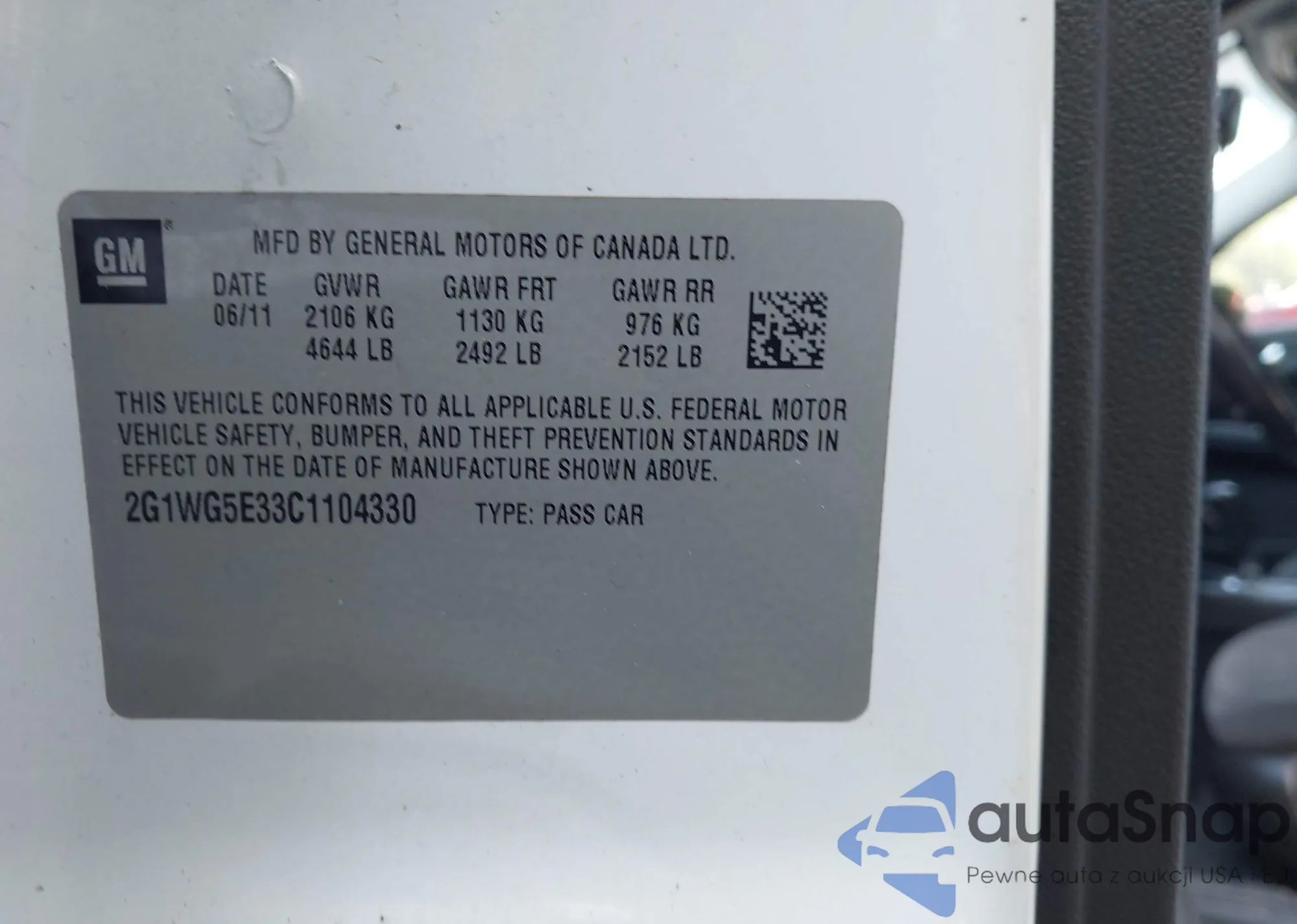 • VIN 2G1WG5E33C1104330