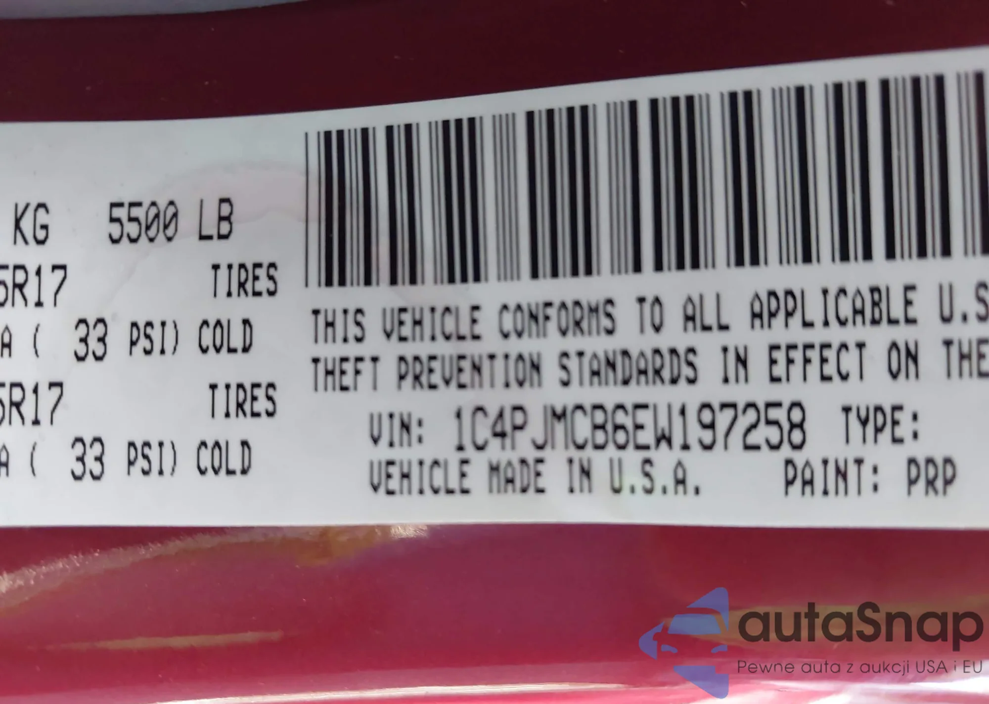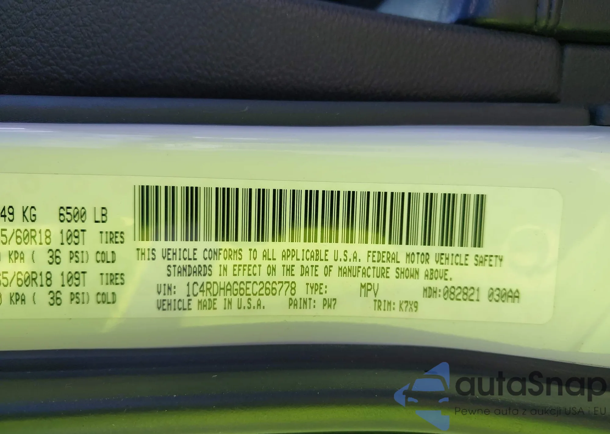 • VIN 1C4RDHAG6EC266778