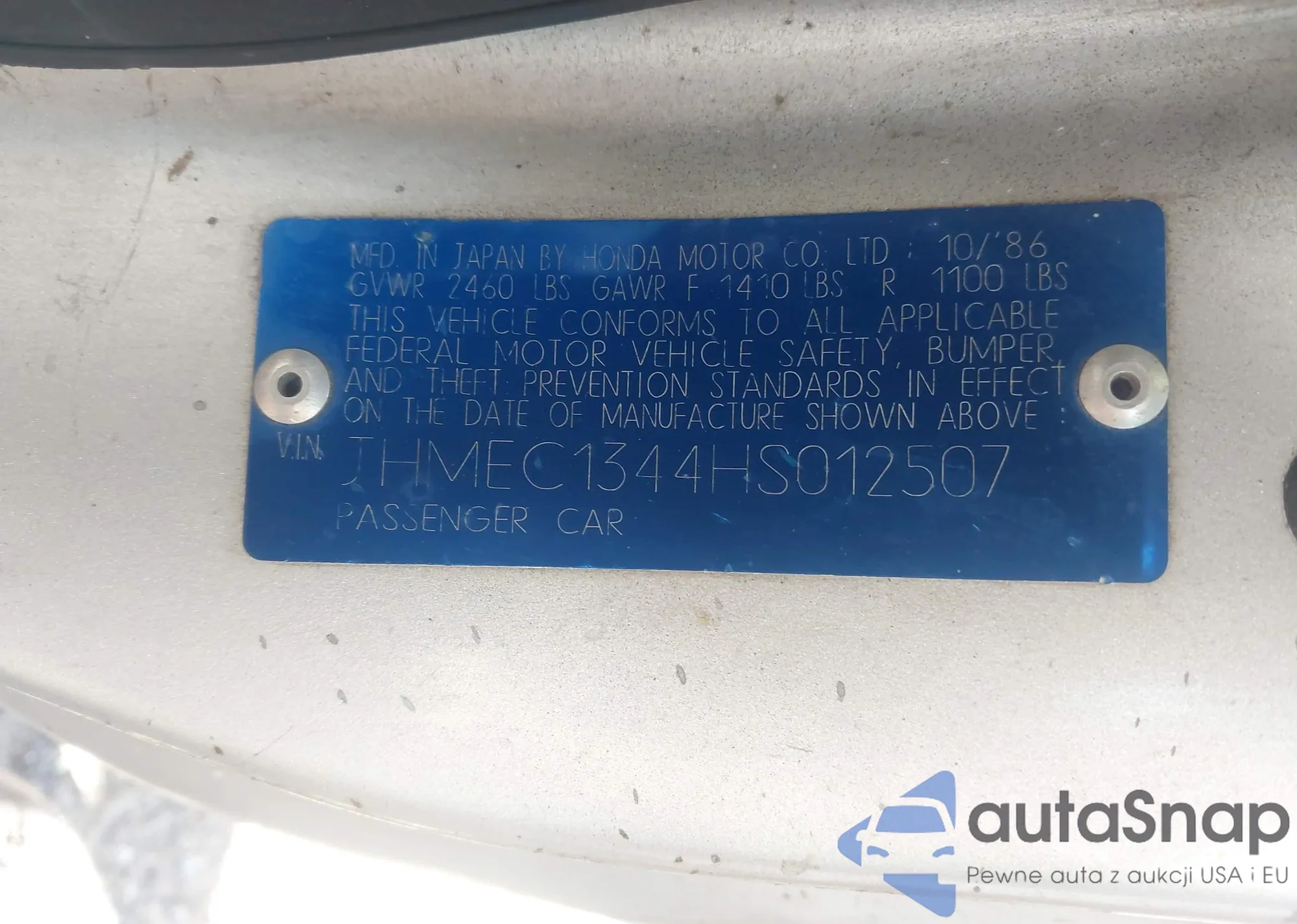LOT: 43253825 VIN: JHMEC1344HS012507
