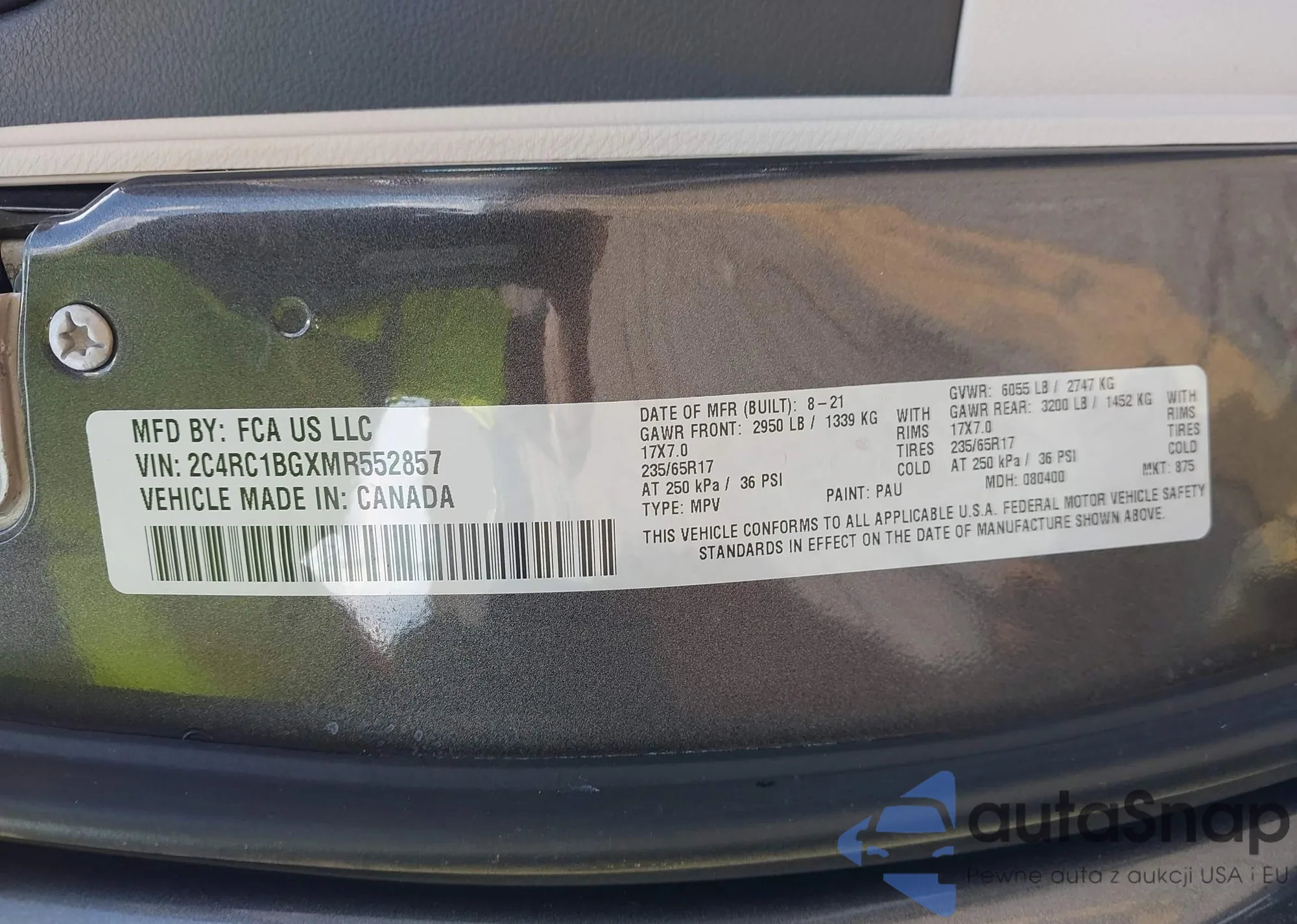 • VIN 2C4RC1BGXMR552857