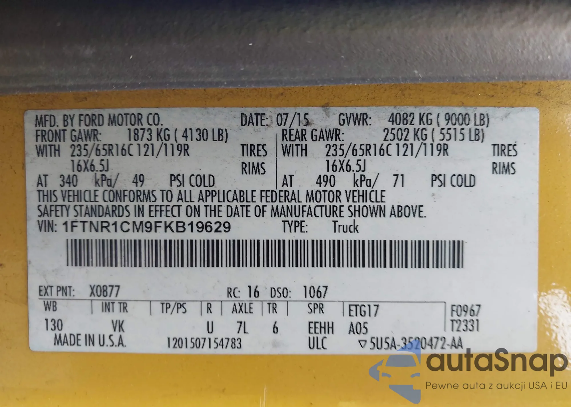 • VIN 1FTNR1CM9FKB19629