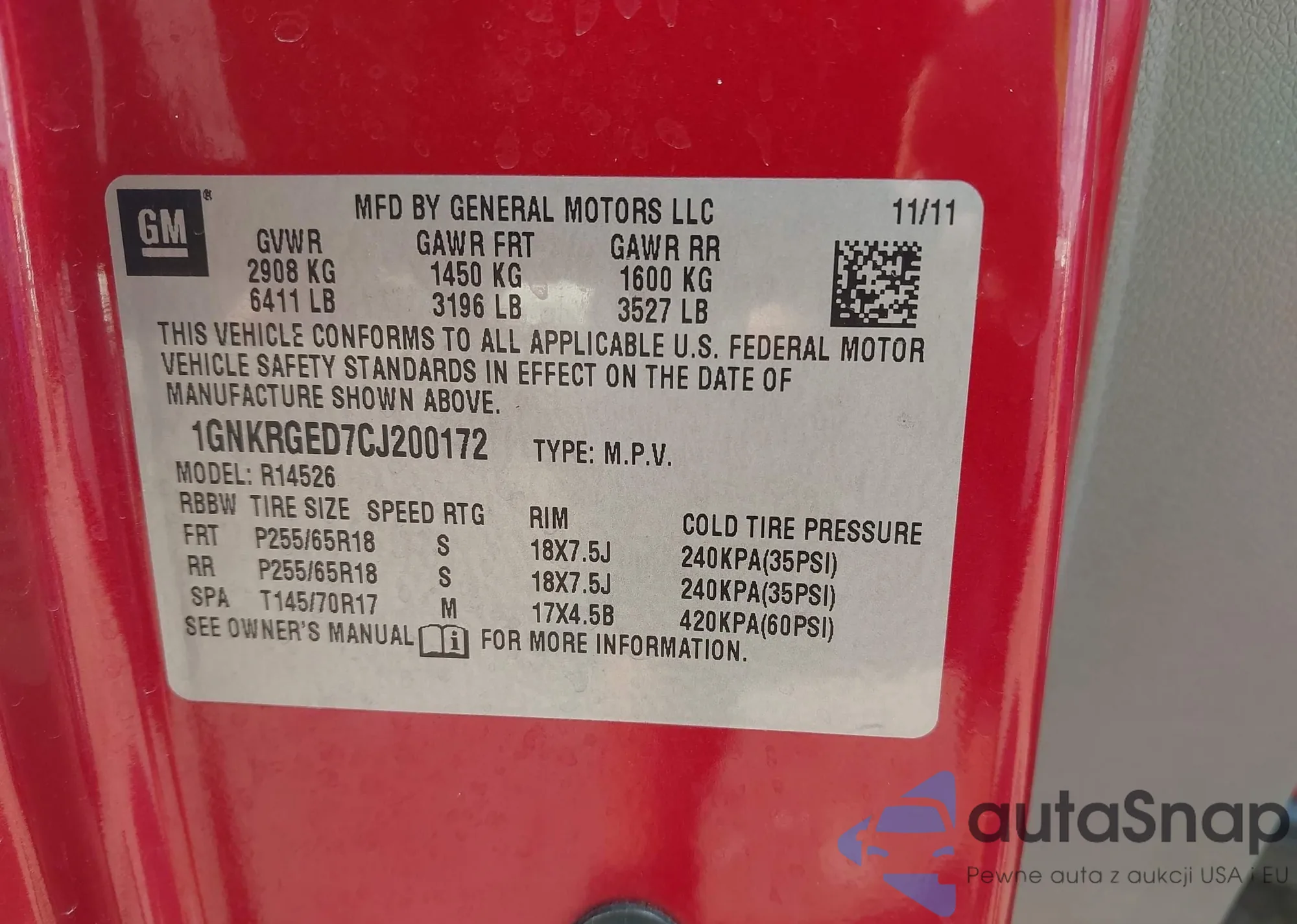 LOT: 43324335 VIN: 1GNKRGED7CJ200172