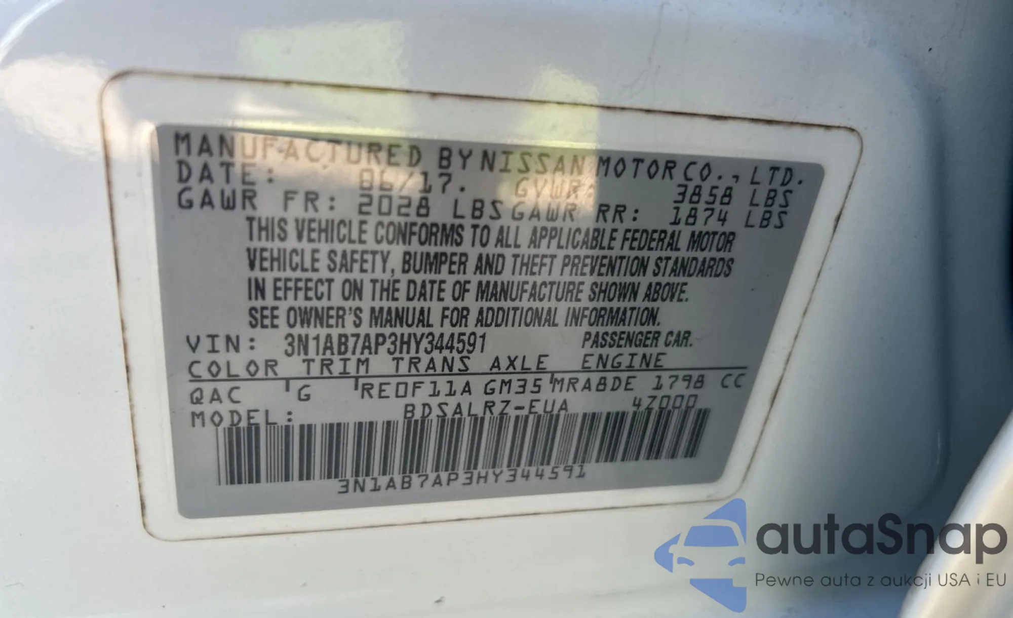 • VIN 3N1AB7AP3HY344591