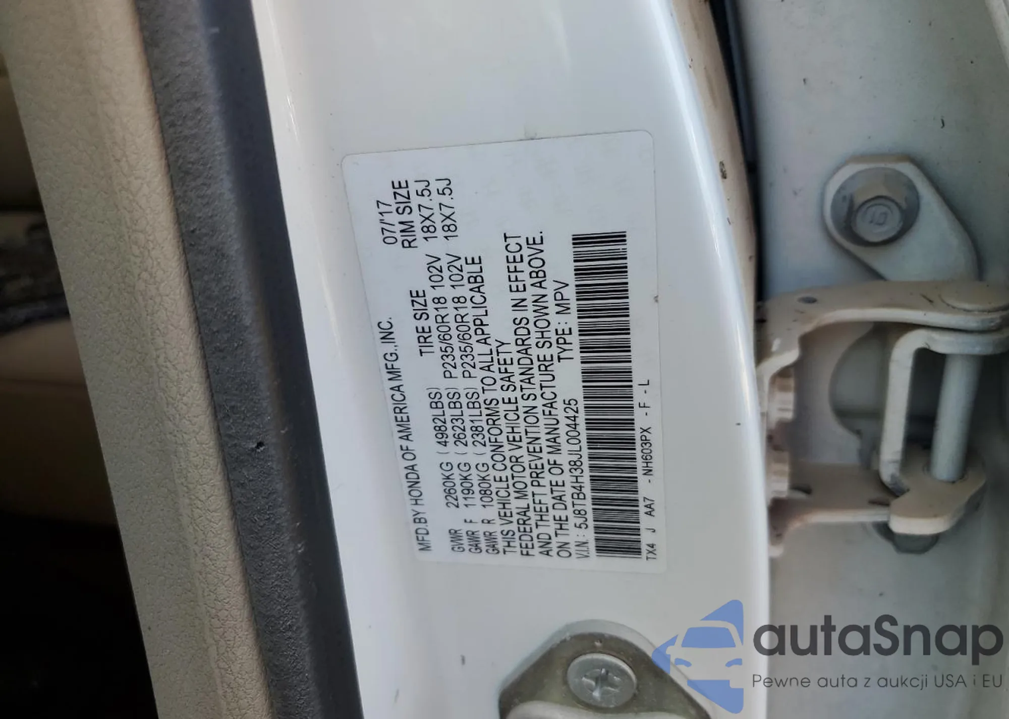 • VIN 5J8TB4H38JL004425