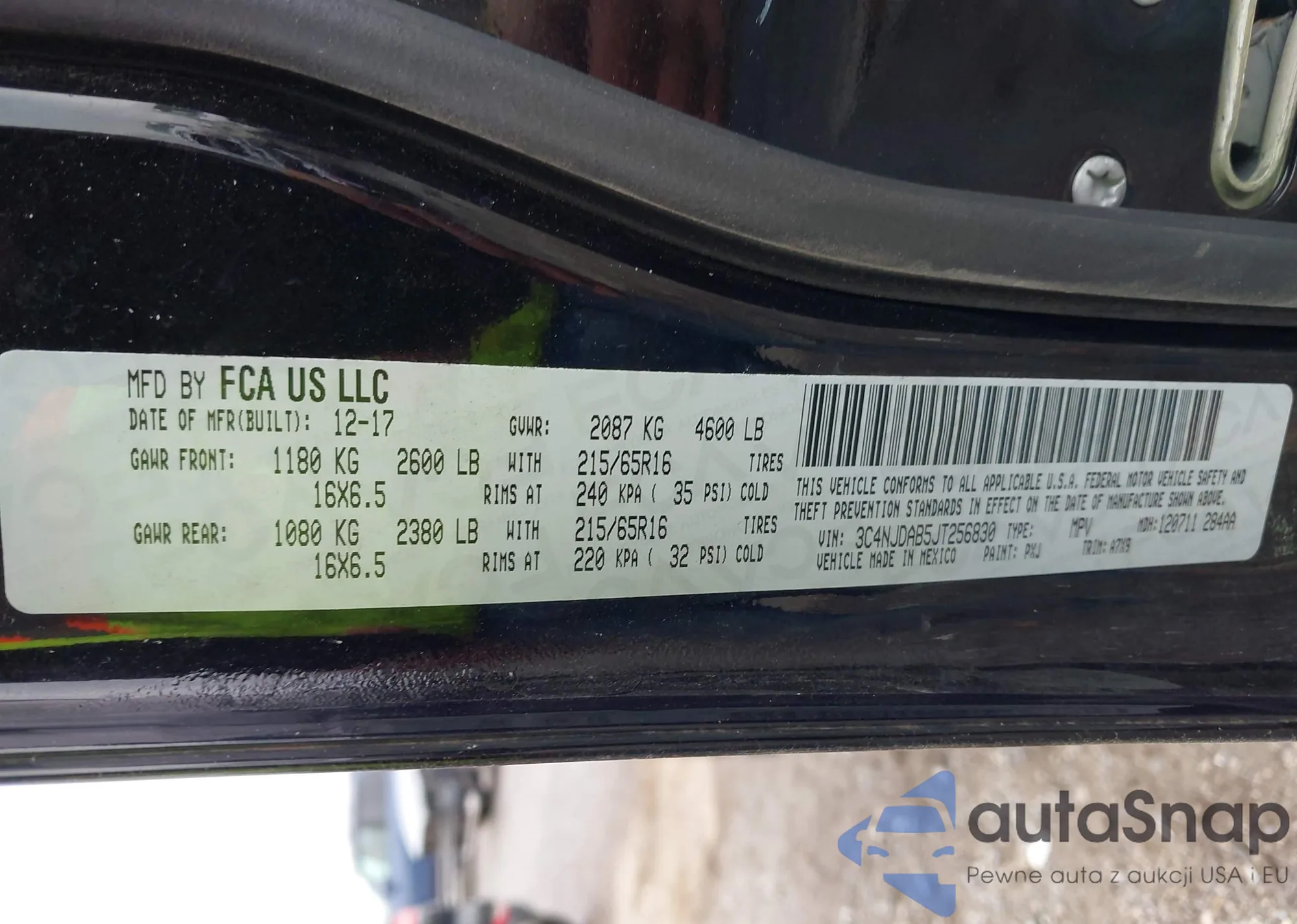 • VIN 3C4NJDAB5JT256830