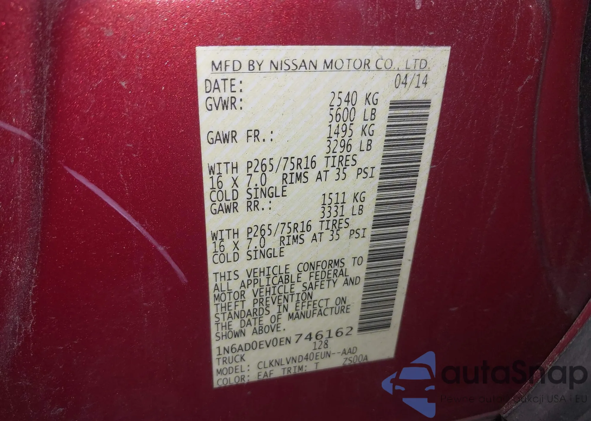 • VIN JN8AS5MT3DW000615