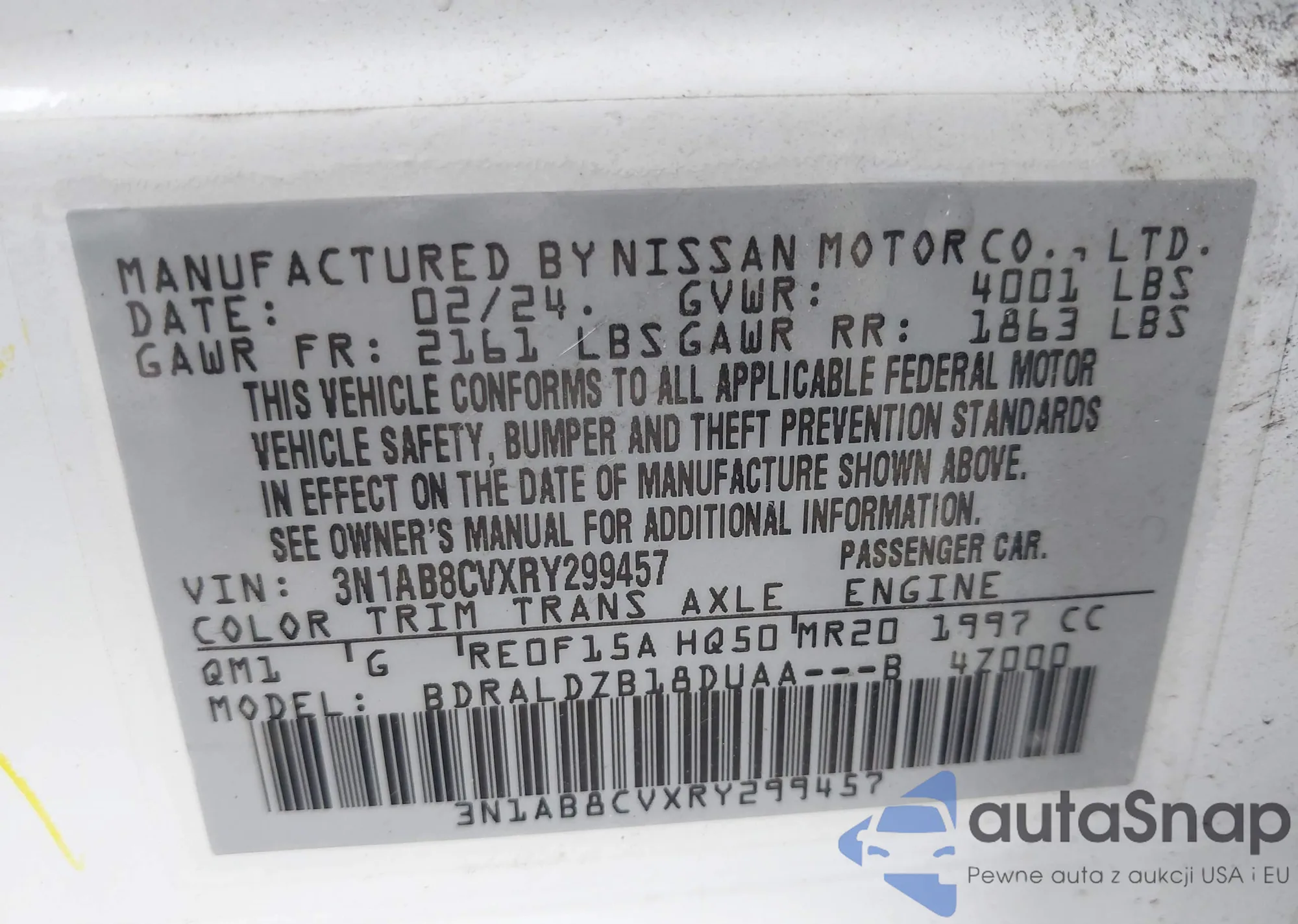• VIN 3N1AB8CVXRY299457