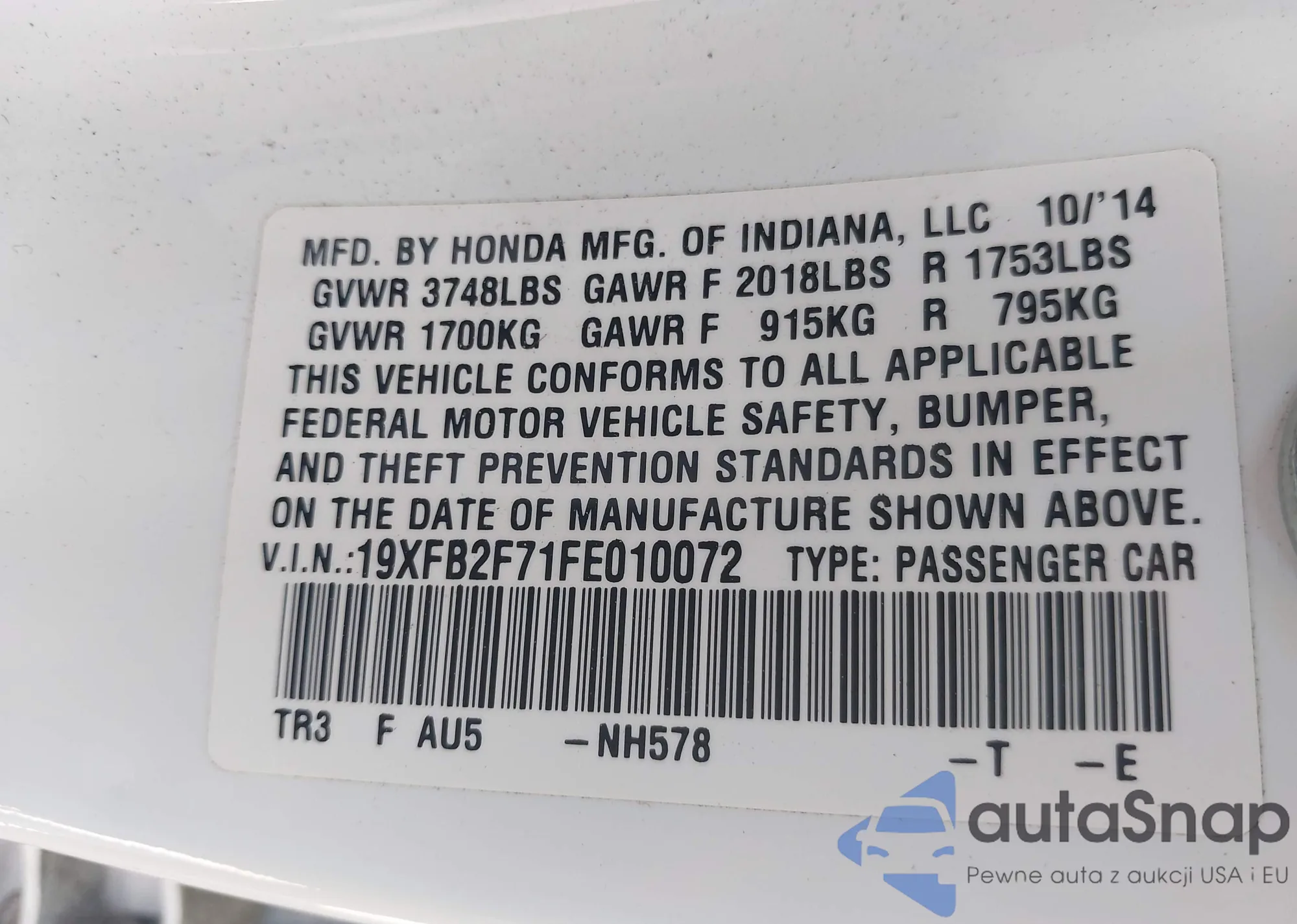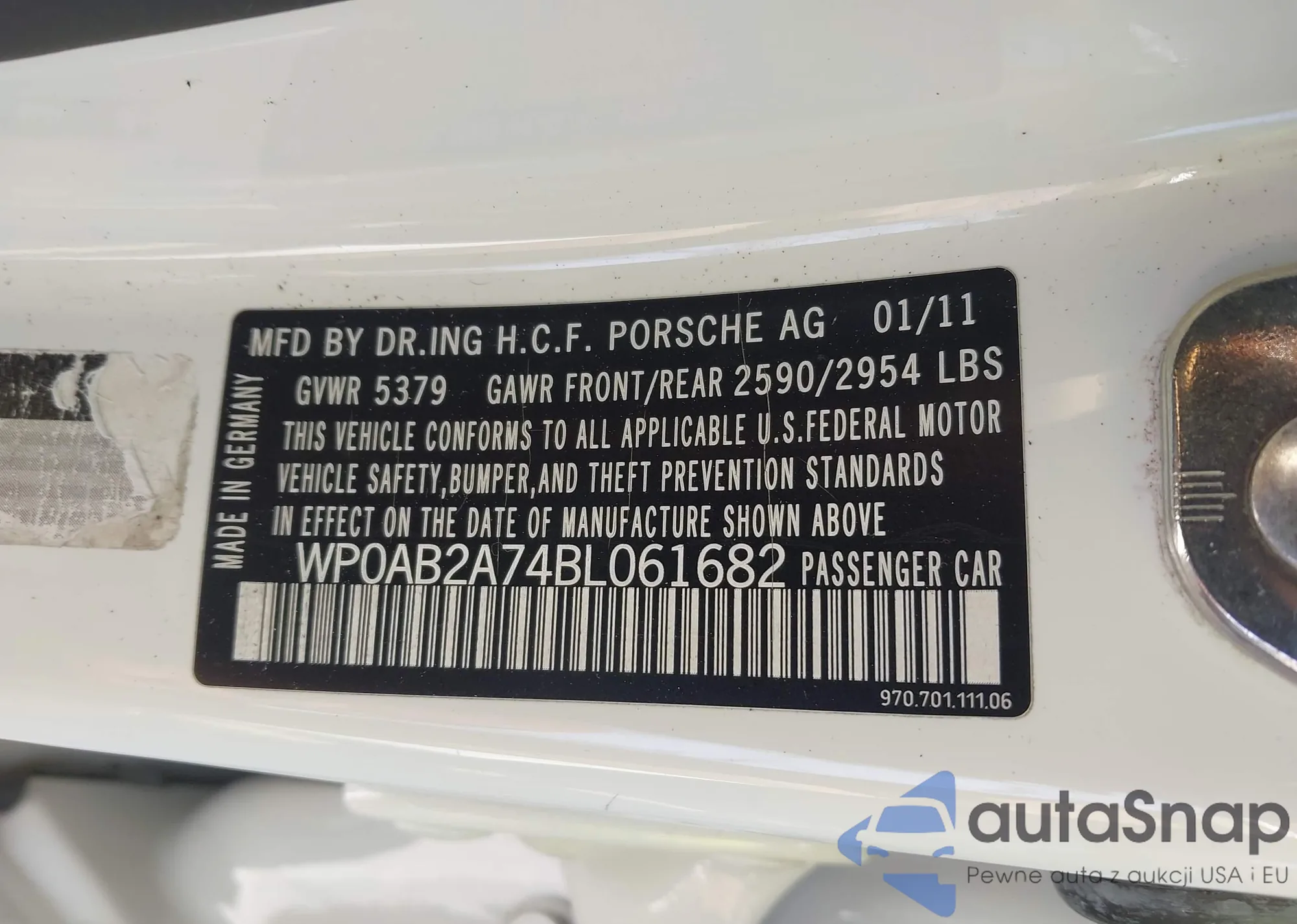 LOT: 43252628 VIN: WP0AB2A74BL061682