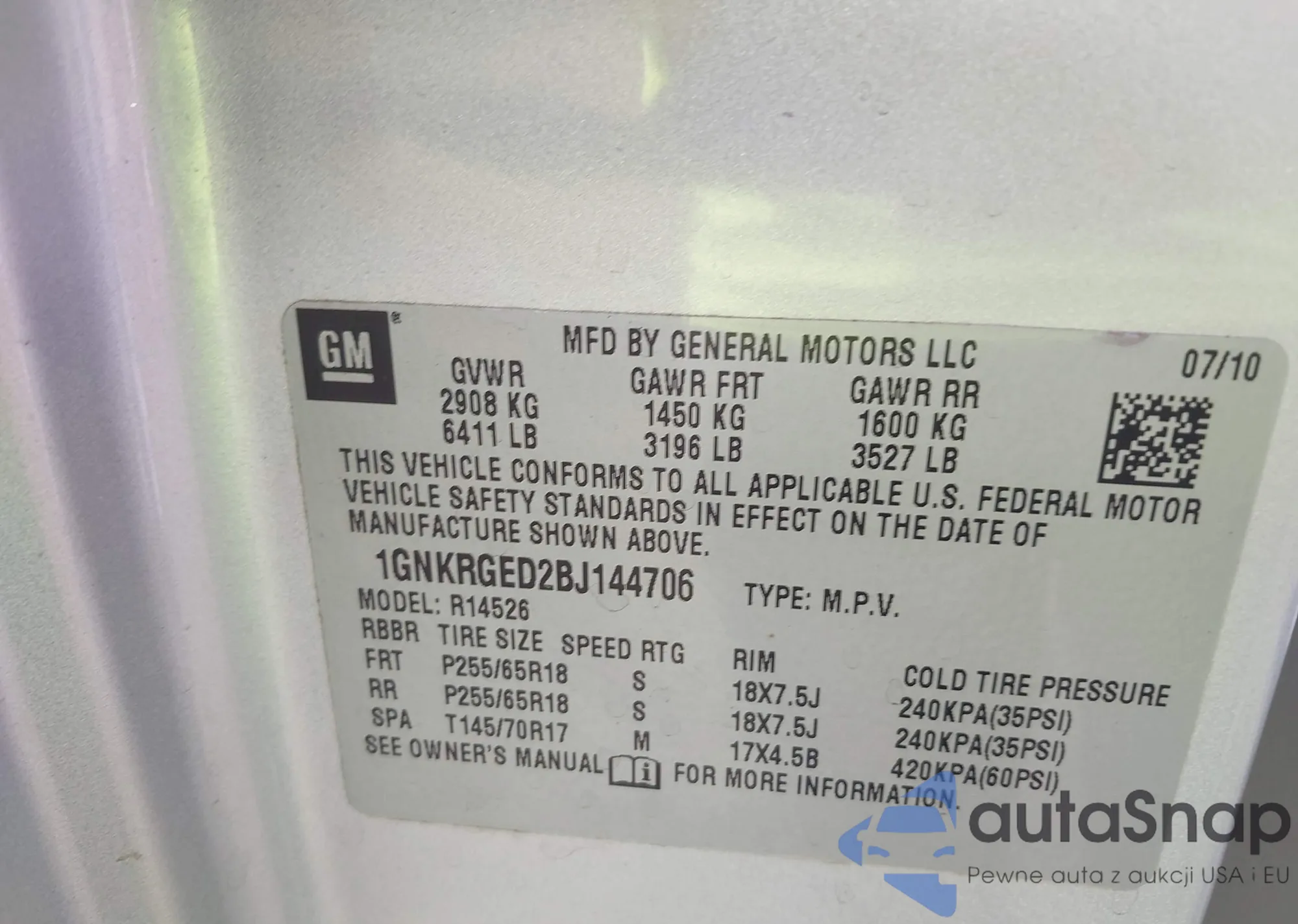 • VIN 1GNKRGED2BJ144706