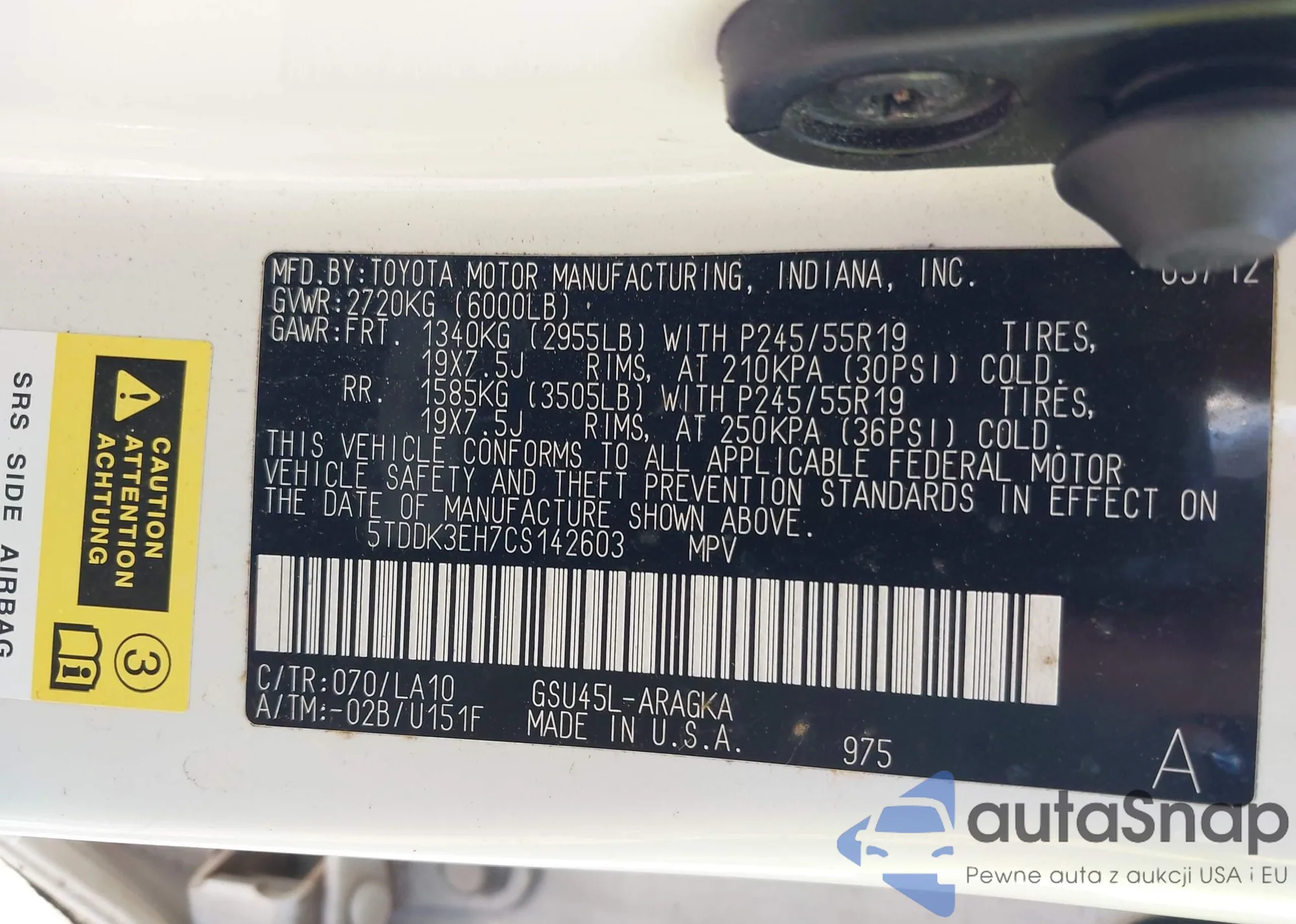 • VIN 5TDDK3EH7CS142603