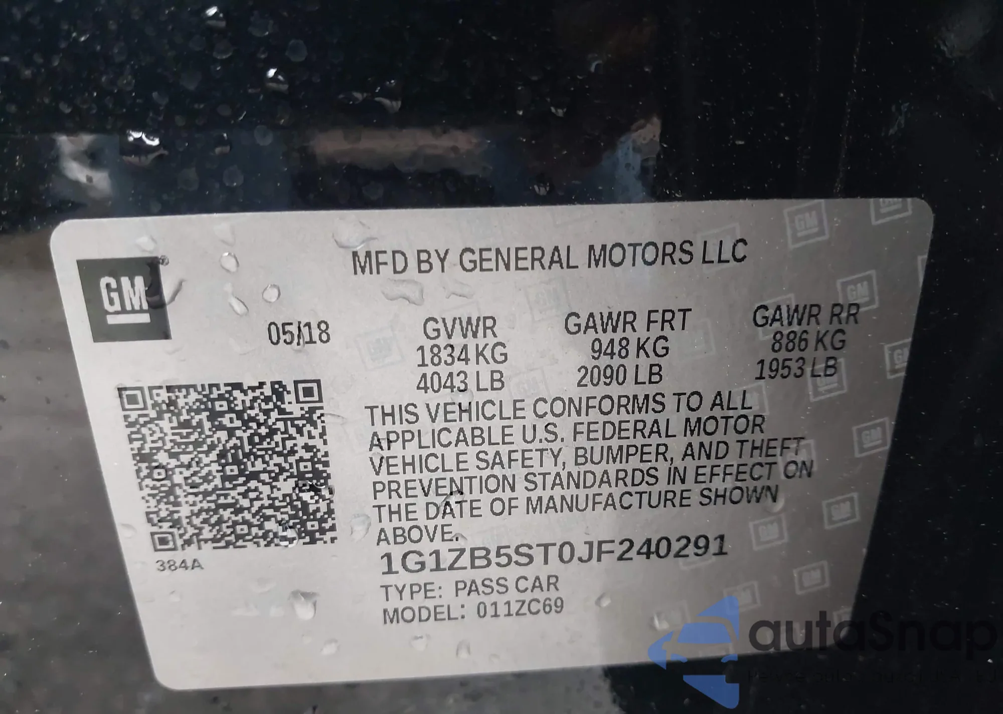 LOT: 43233728 VIN: 1G1ZB5ST0JF240291