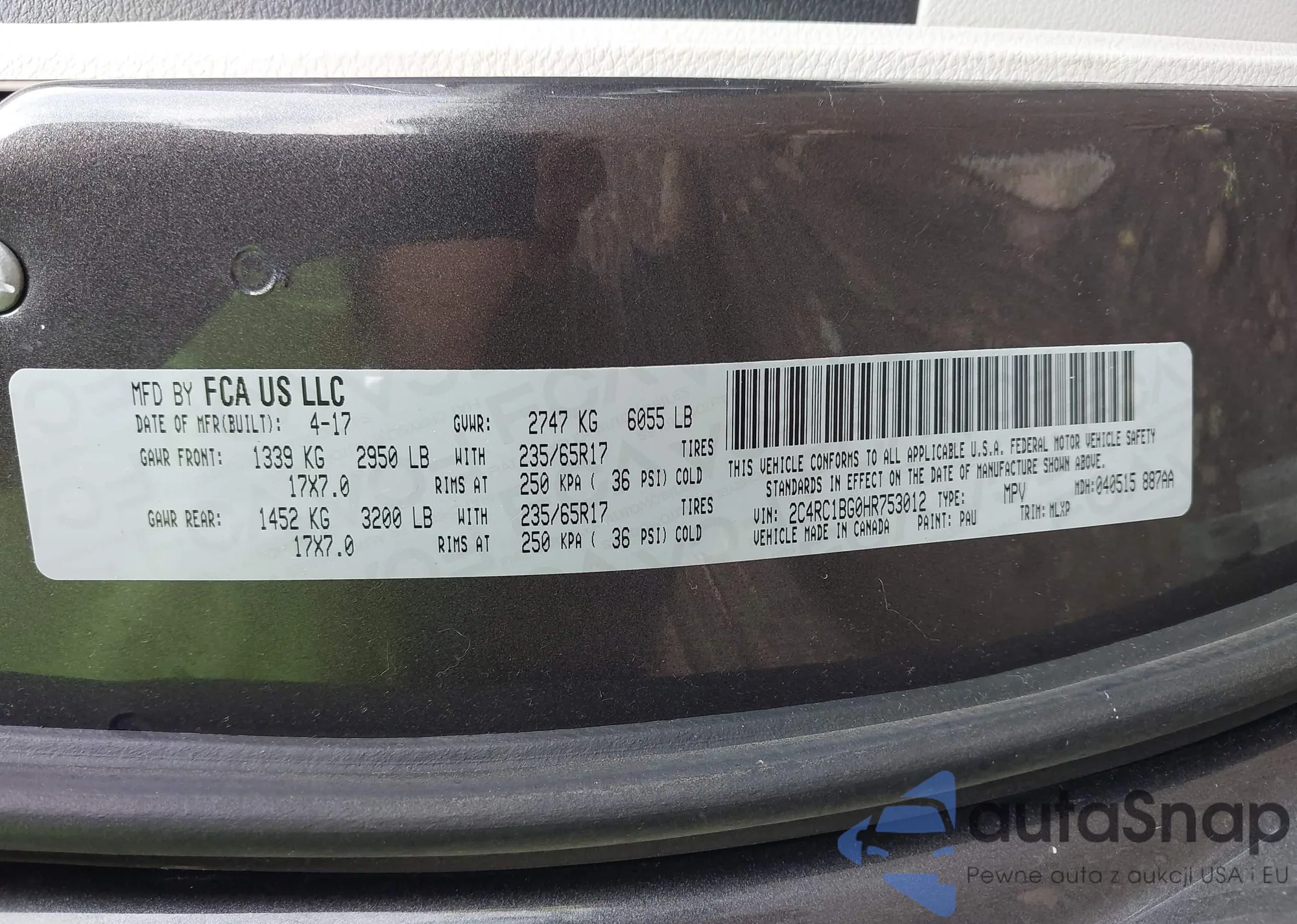 • VIN 2C4RC1BG0HR753012