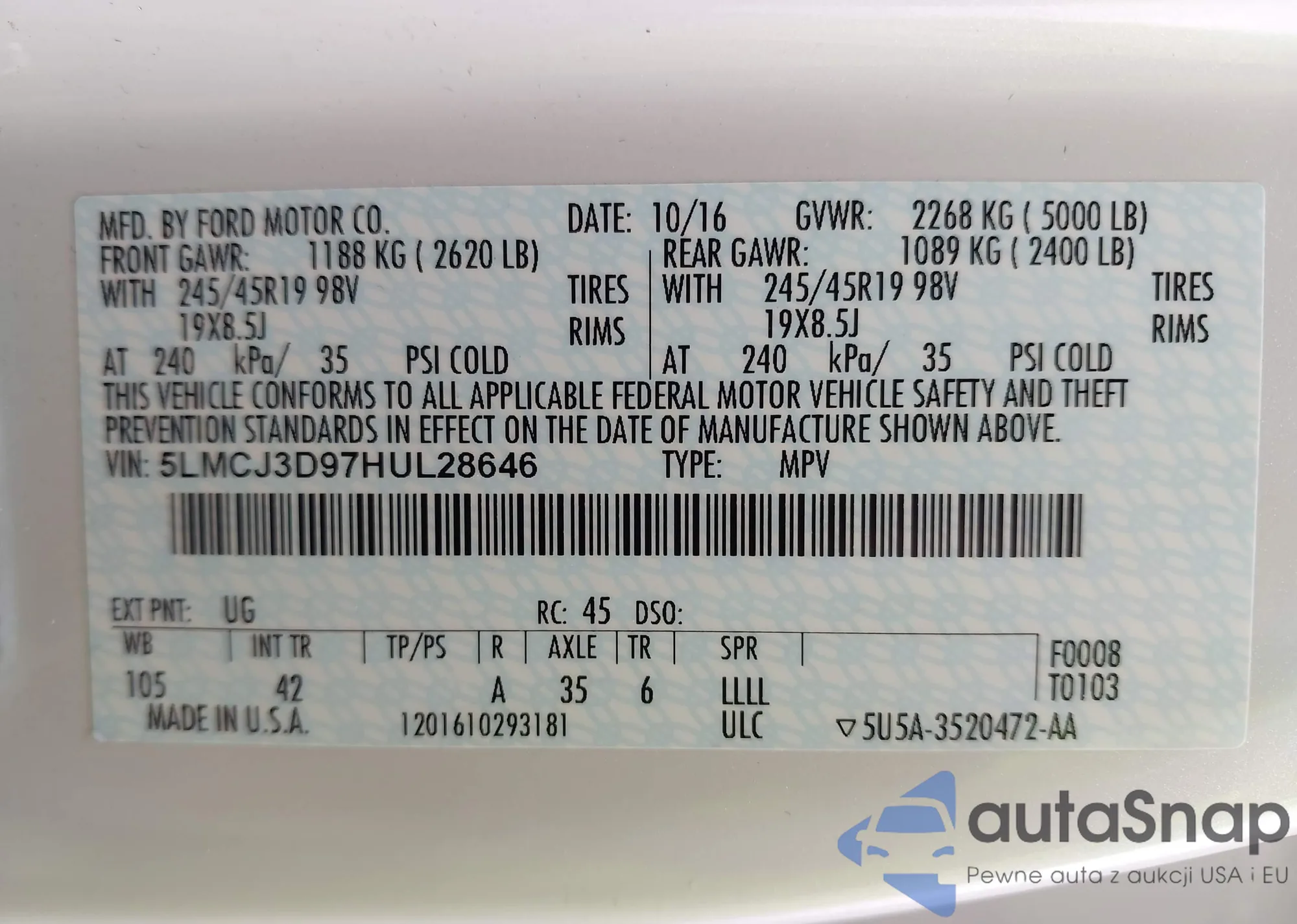 • VIN 5LMCJ3D97HUL28646