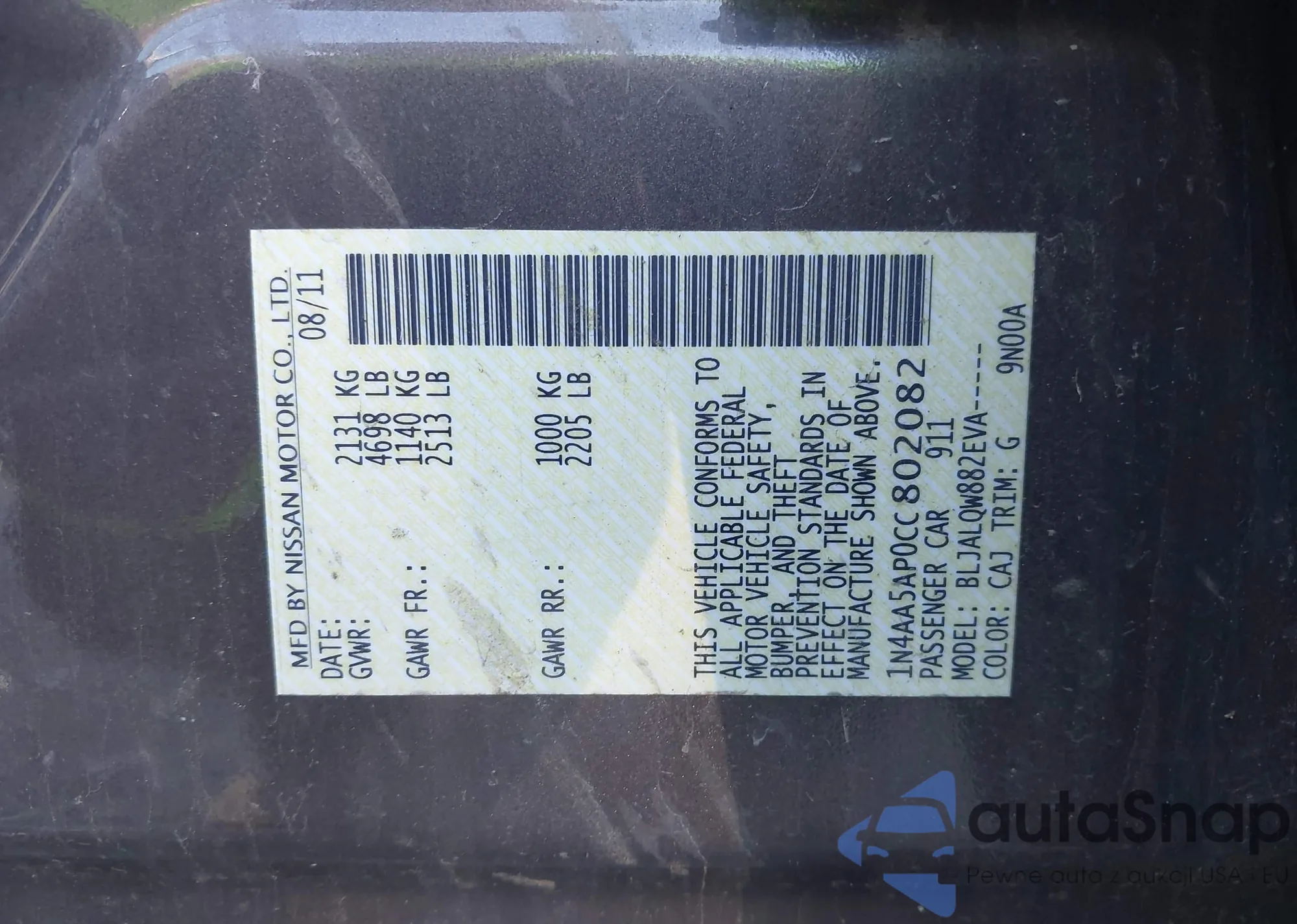 • VIN 1N4AA5AP0CC802082