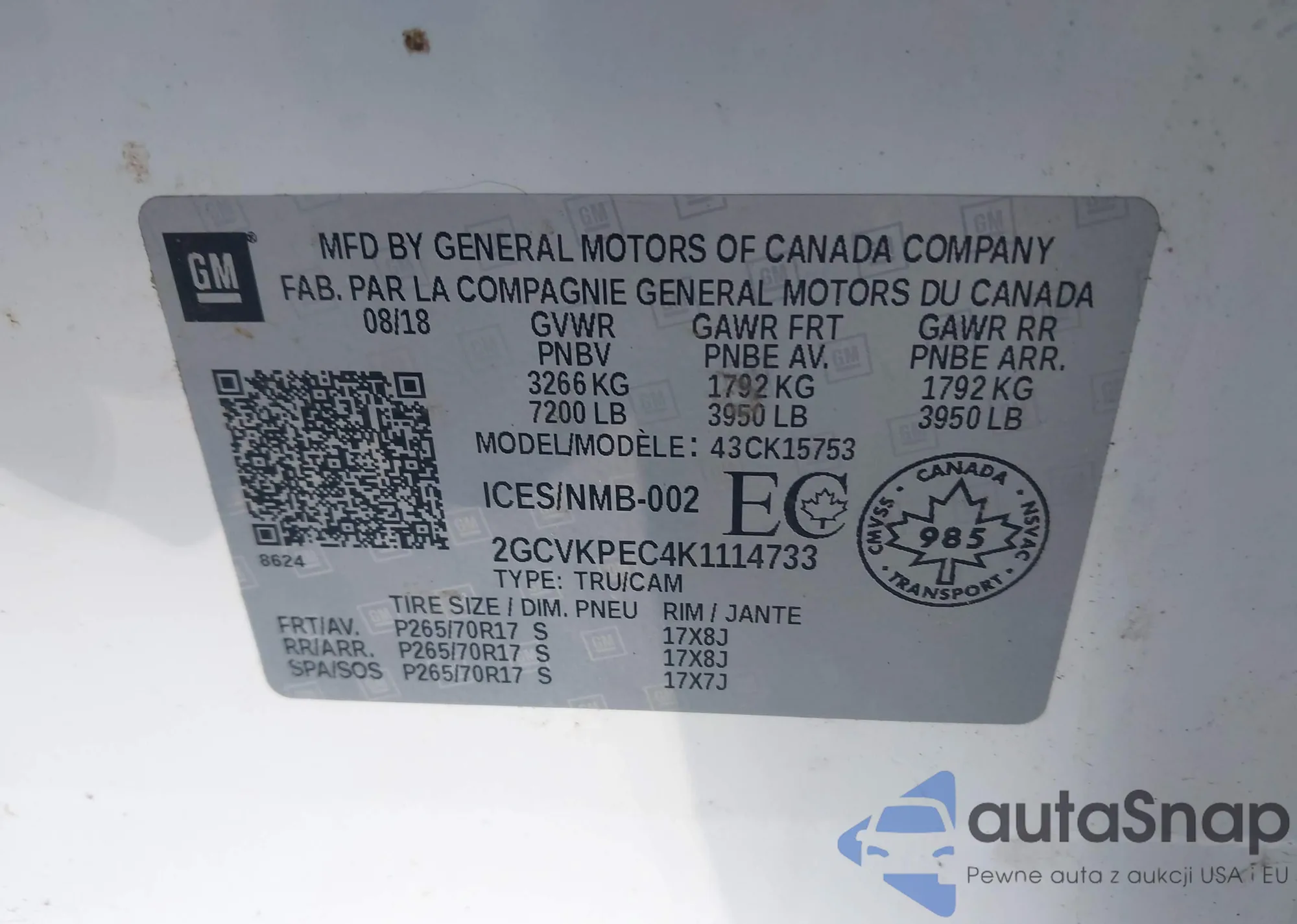 LOT: 43441155 VIN: KL8CD6S97EC522025