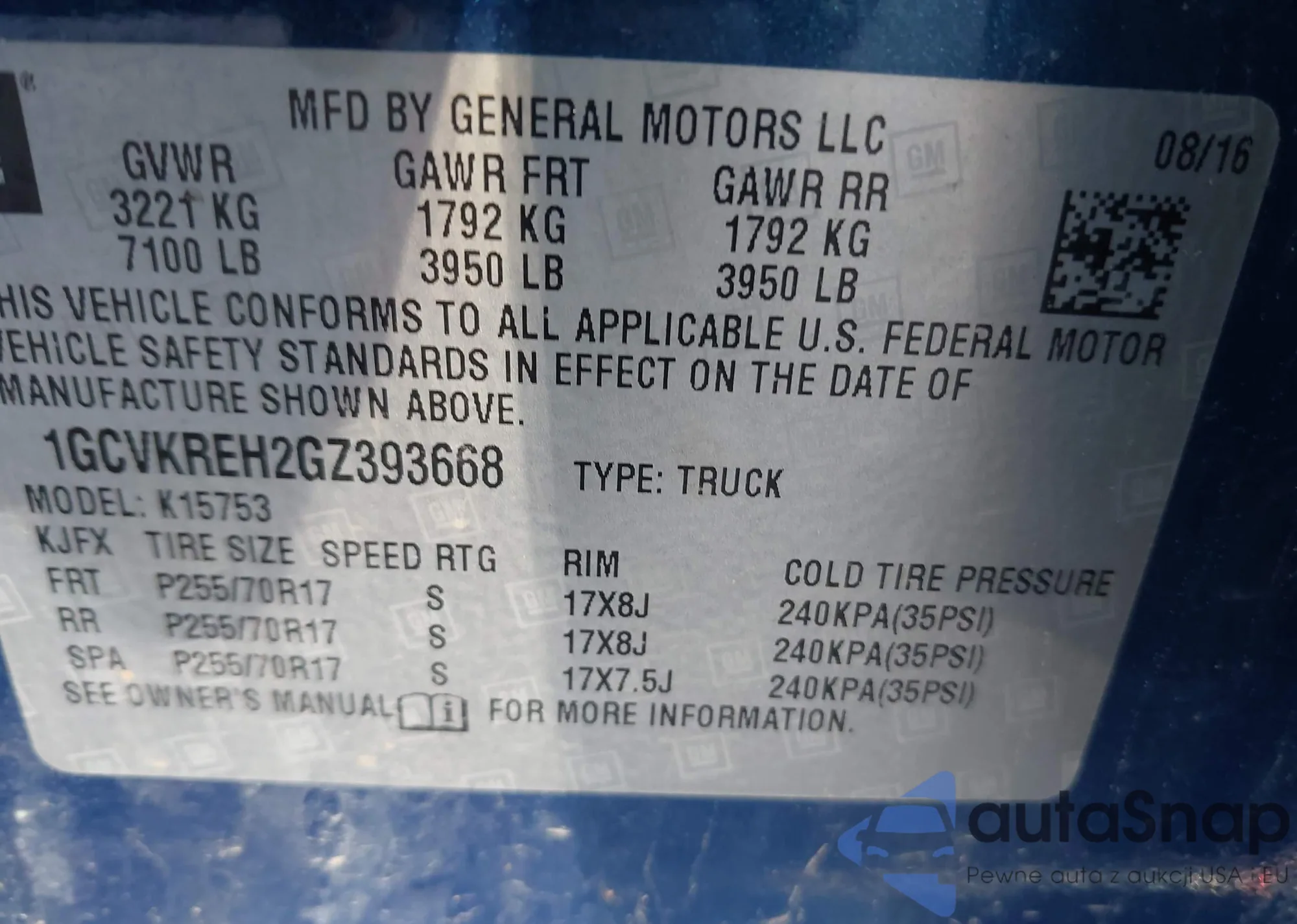 • VIN 1GCVKREH2GZ393668