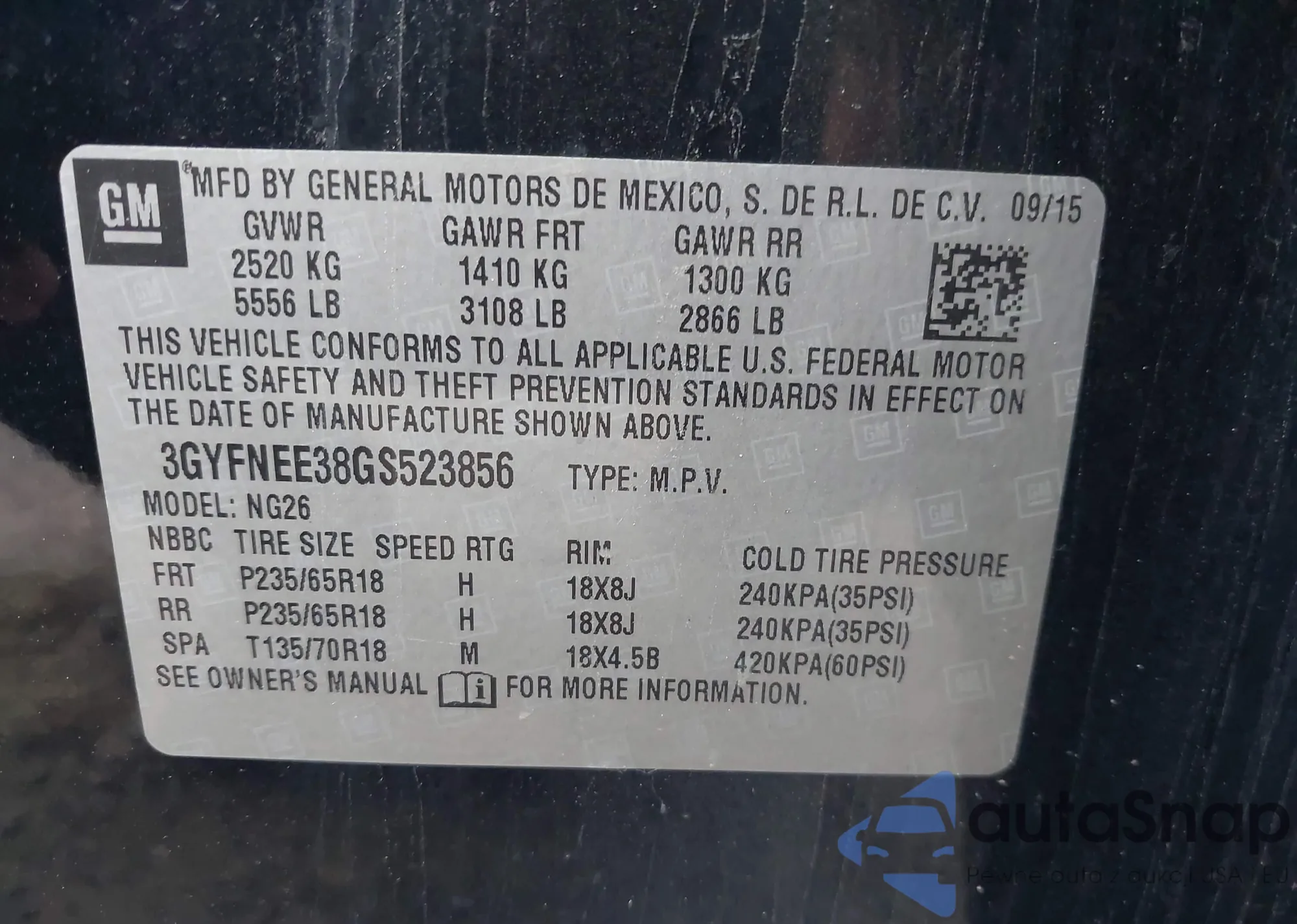 • VIN 3GYFNEE38GS523856