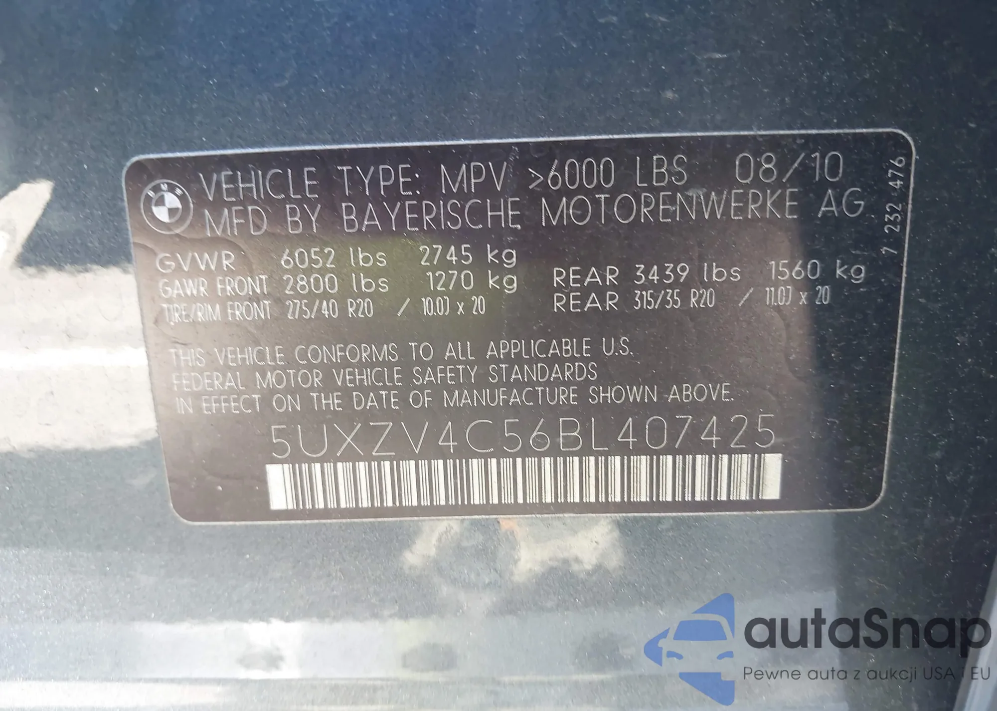 • VIN 5UXZV4C56BL407425