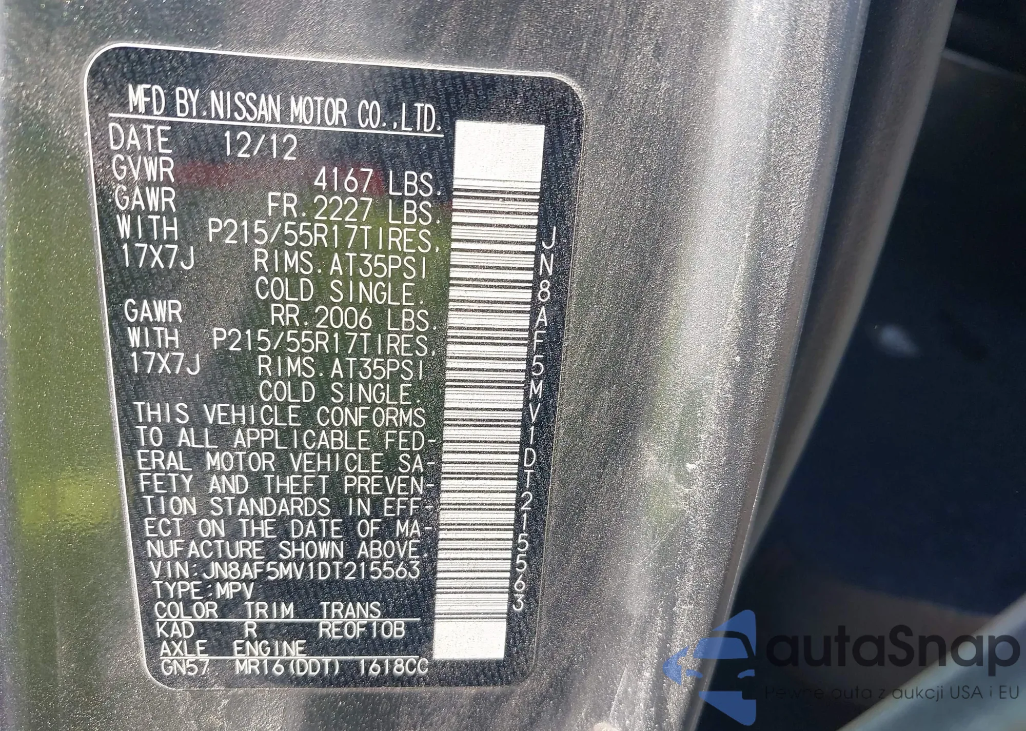 • VIN JN8AF5MV1DT215563