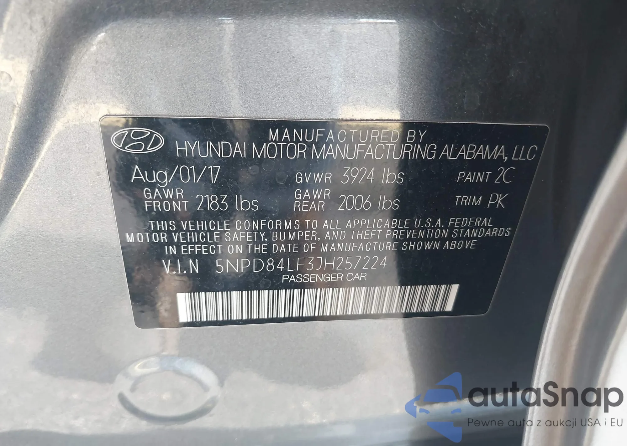 • VIN 5NPD84LF3JH257224