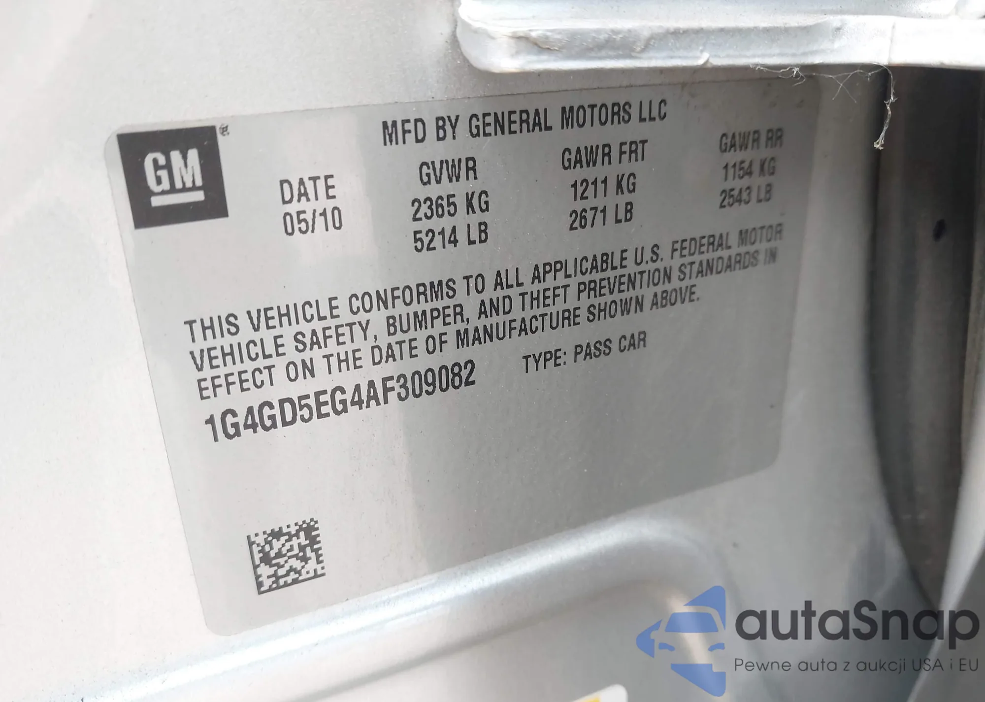 LOT: 43100650 VIN: 2G1FC1EV2A9128185