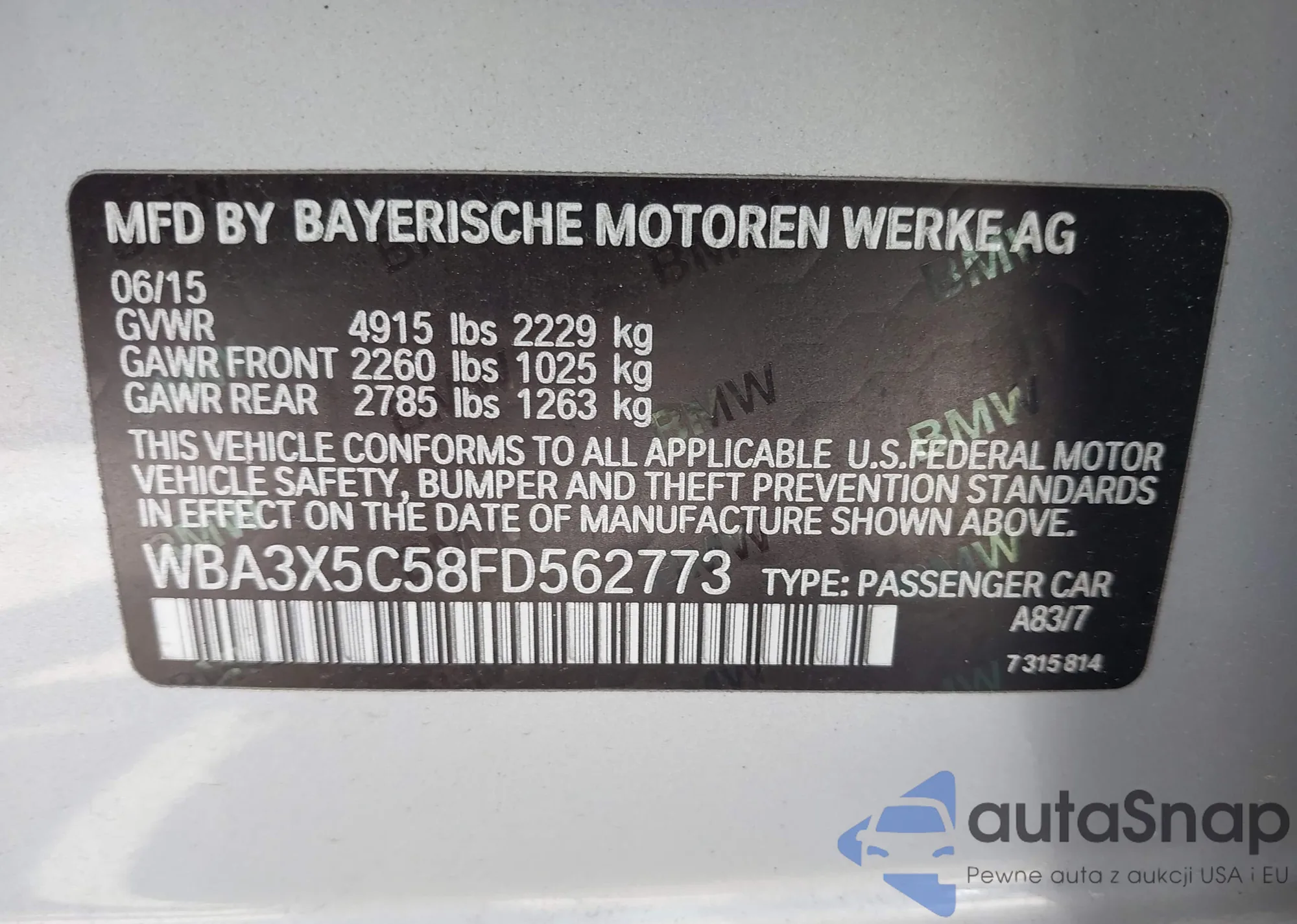 • VIN WBA3X5C58FD562773