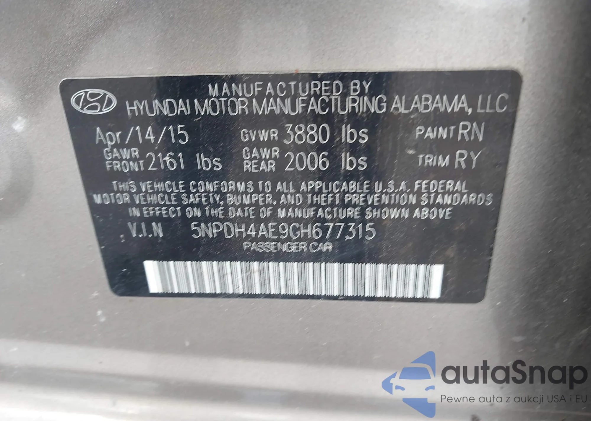• VIN 5NPDH4AE9GH677315