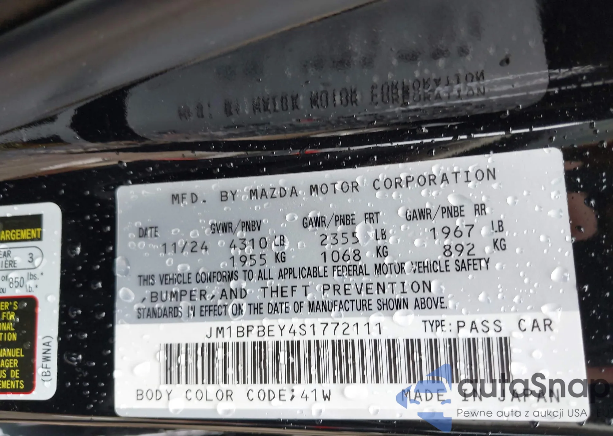 LOT: 42730496 VIN: JM1BPBEY4S1772111