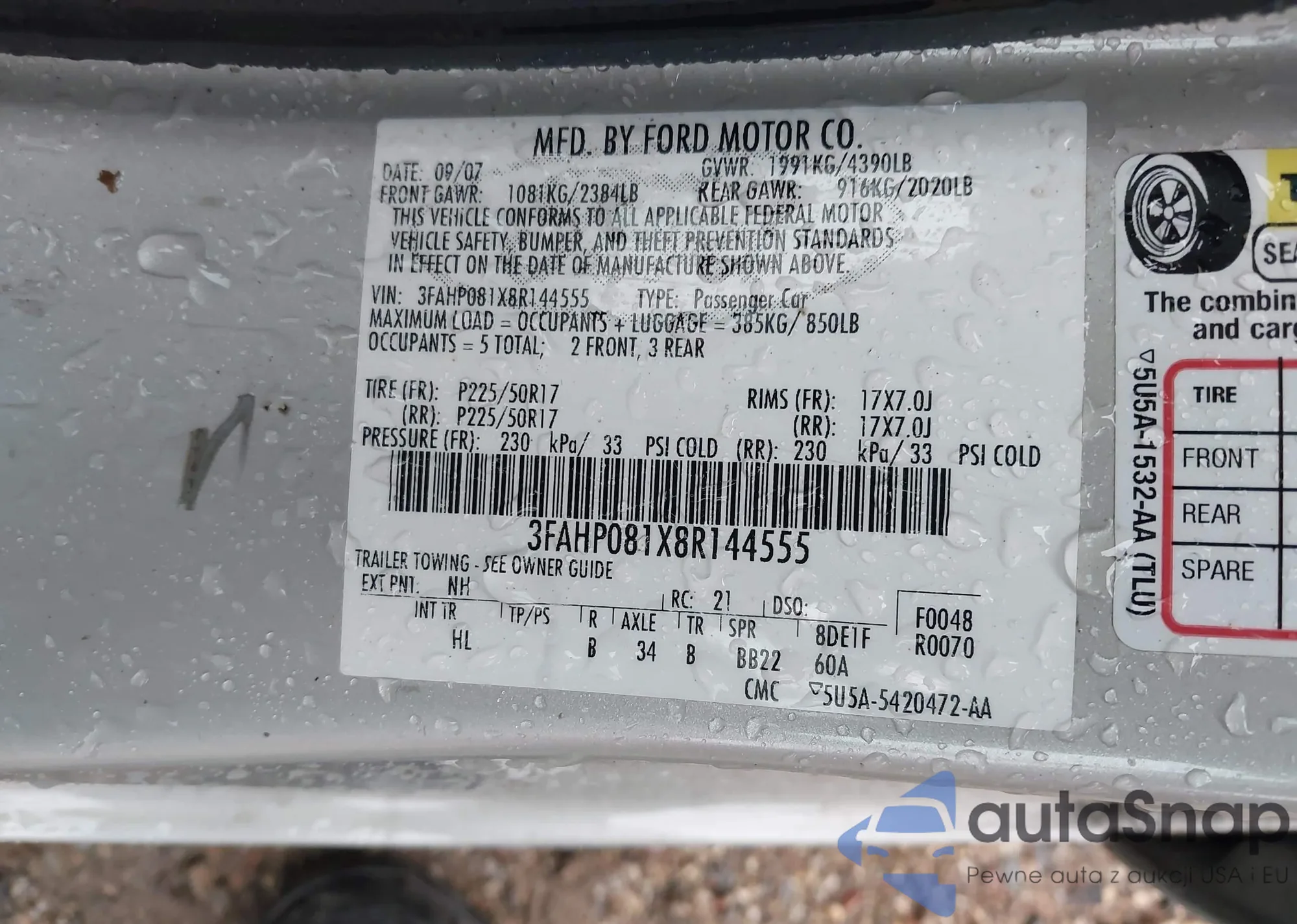 • VIN 3FAHP081X8R144555
