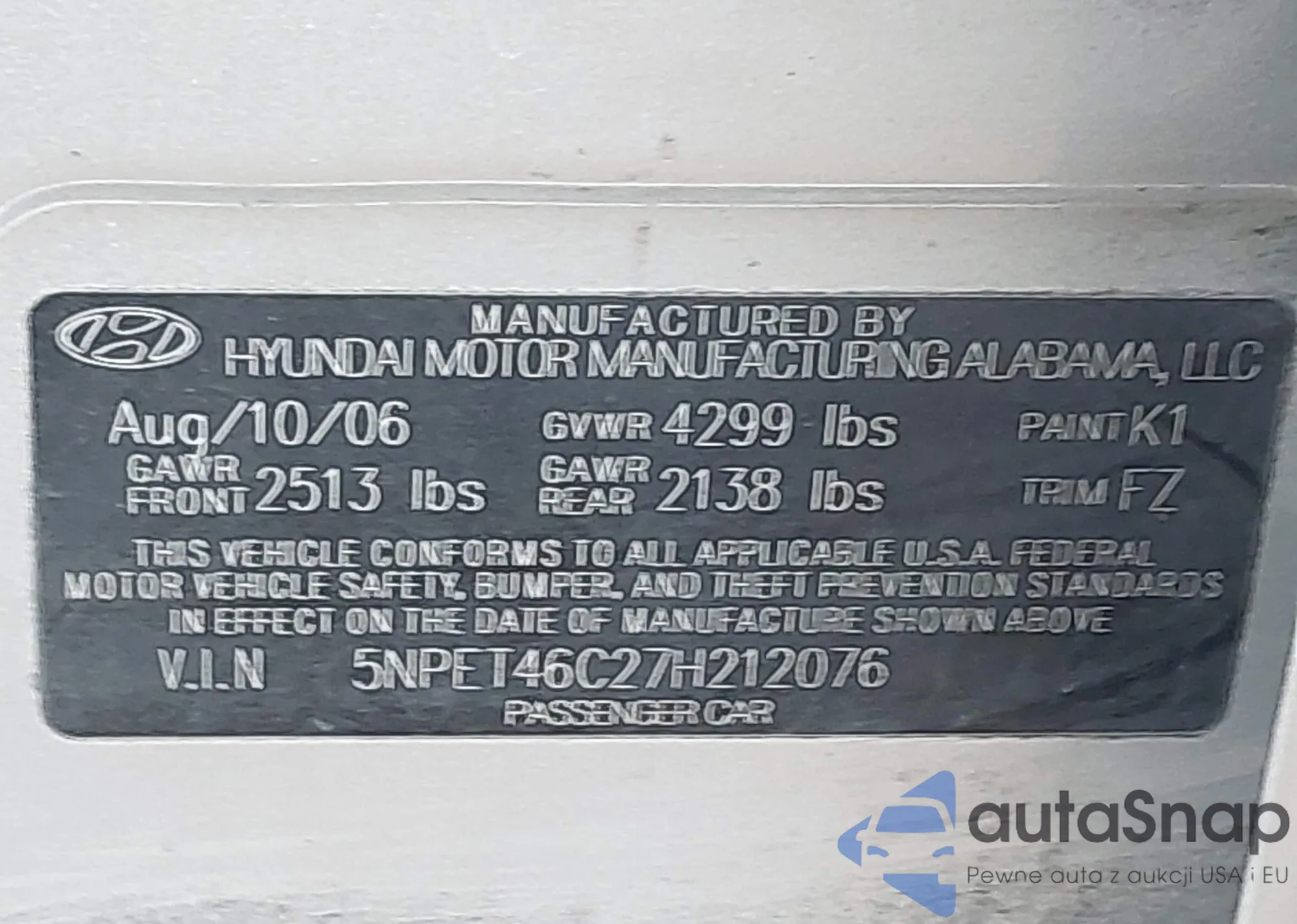 LOT: 43151763 VIN: 5NPET46C27H212076