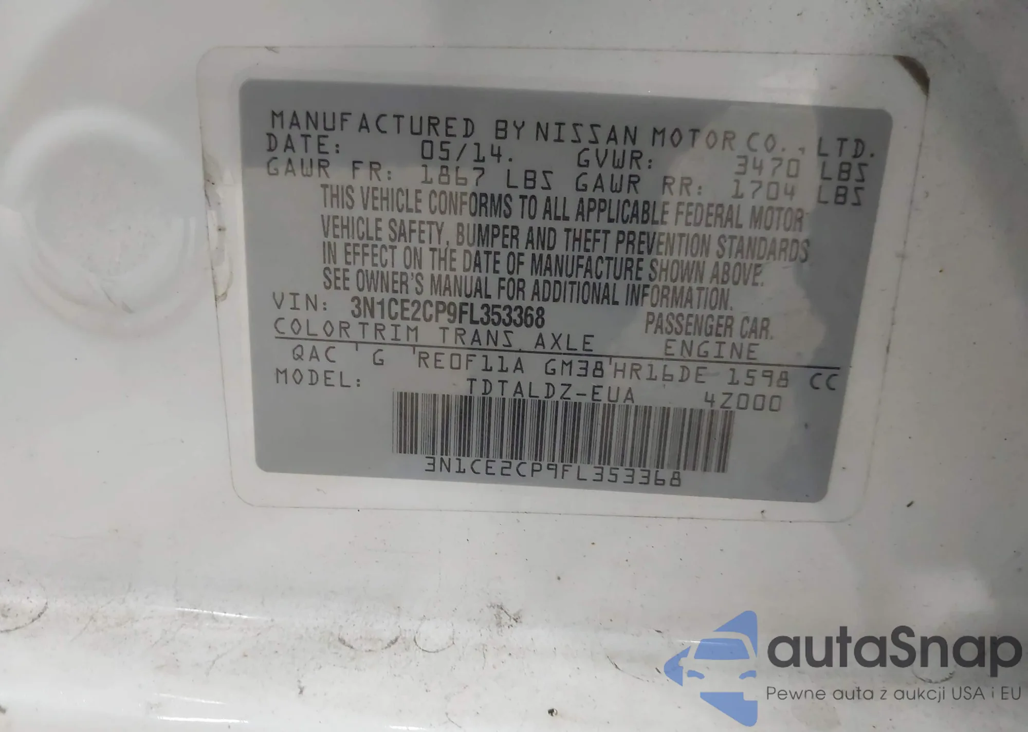 • VIN 3N1CE2CP9FL353368