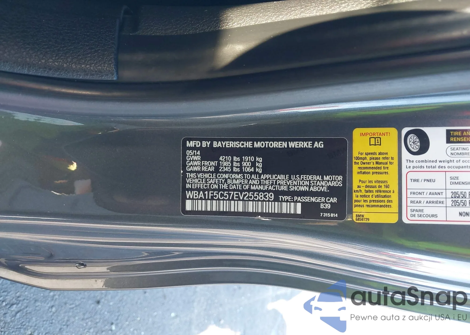 • VIN WBA1F5C57EV255839