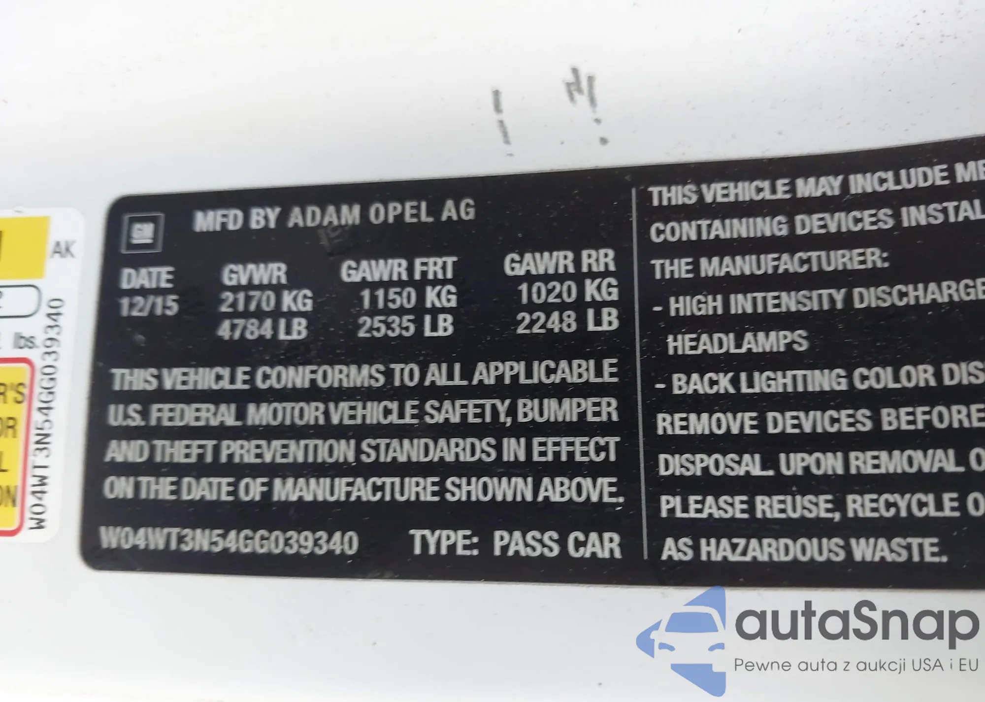 • VIN 1G1AK15FX77205272