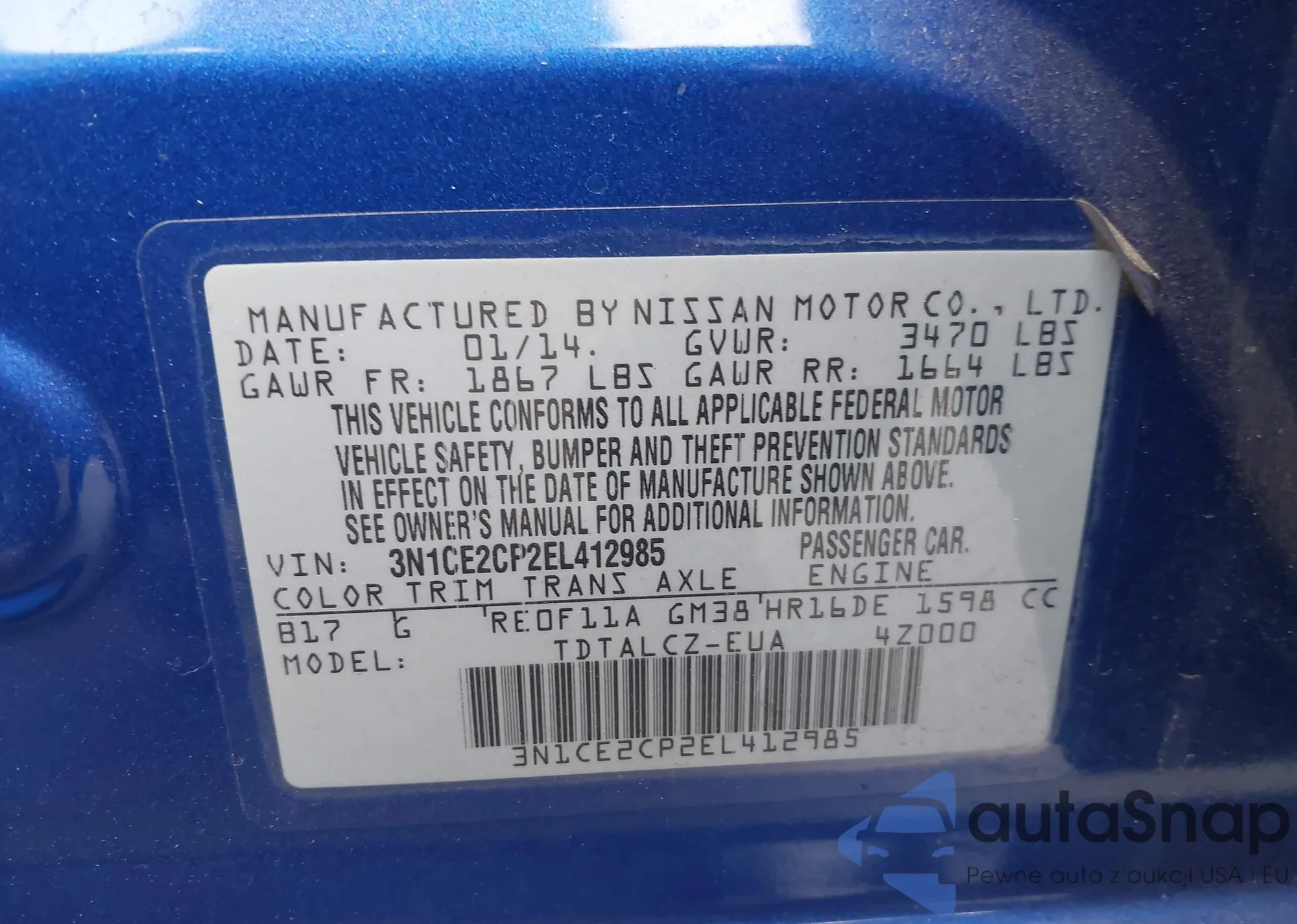 • VIN 3N1CE2CP2EL412985