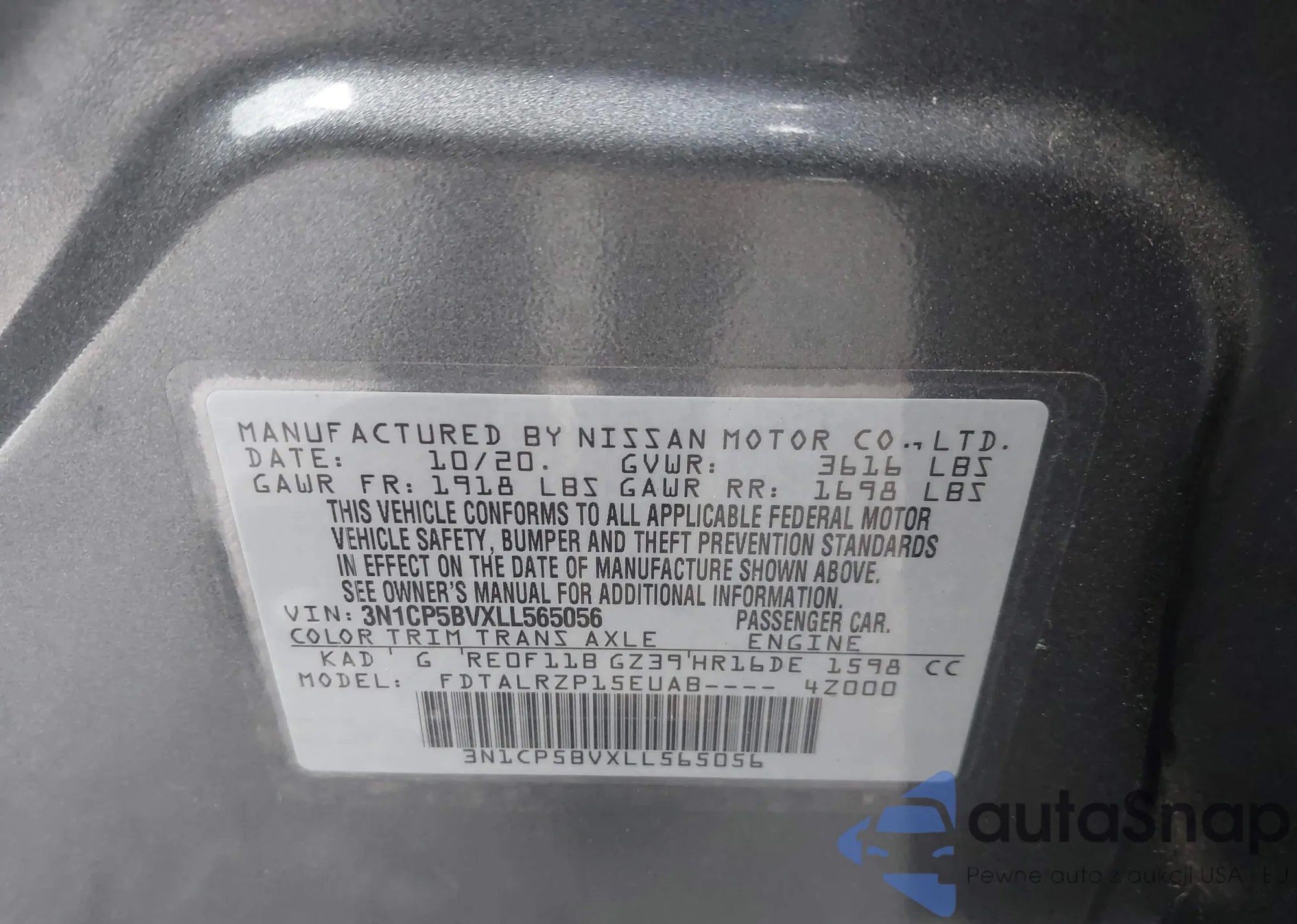 • VIN 3N1CP5BVXLL565056