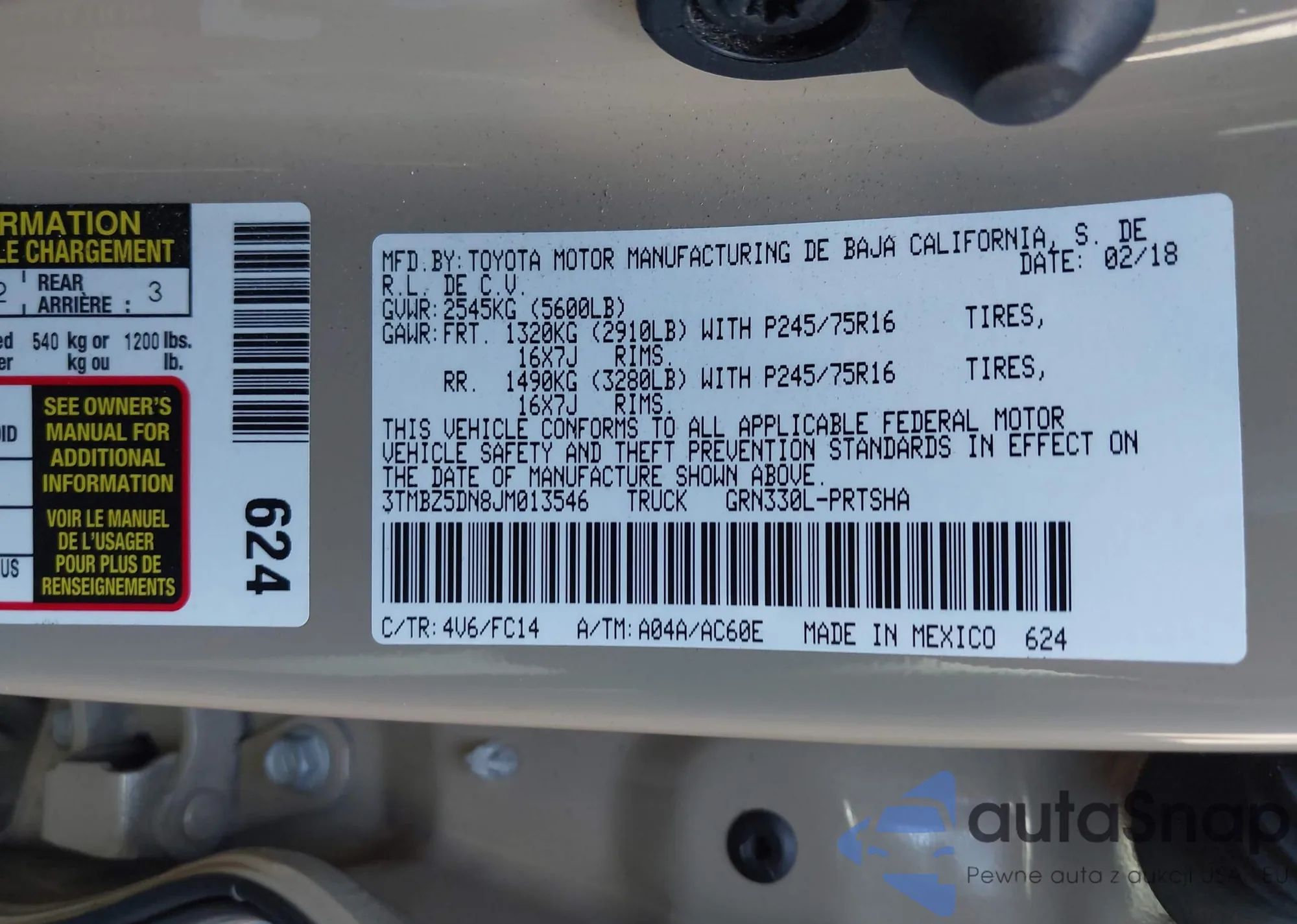 LOT: 43267706 VIN: 5TFRX5GN8KX158629