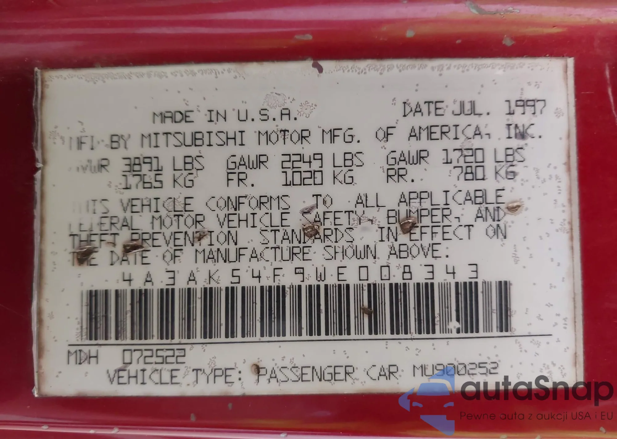 • VIN 4A3AK54F9WE008343