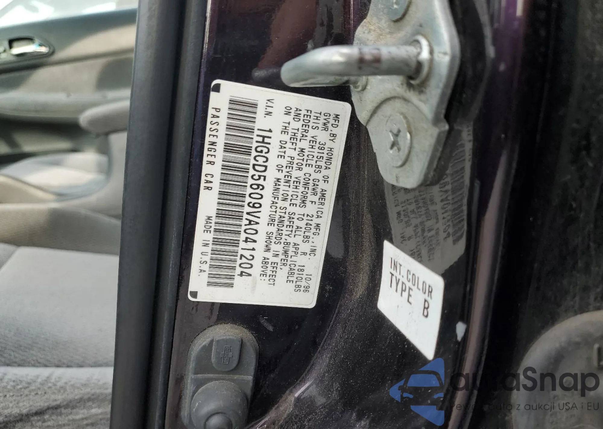 LOT: 85665245 VIN: 1HGCD5609VA041204
